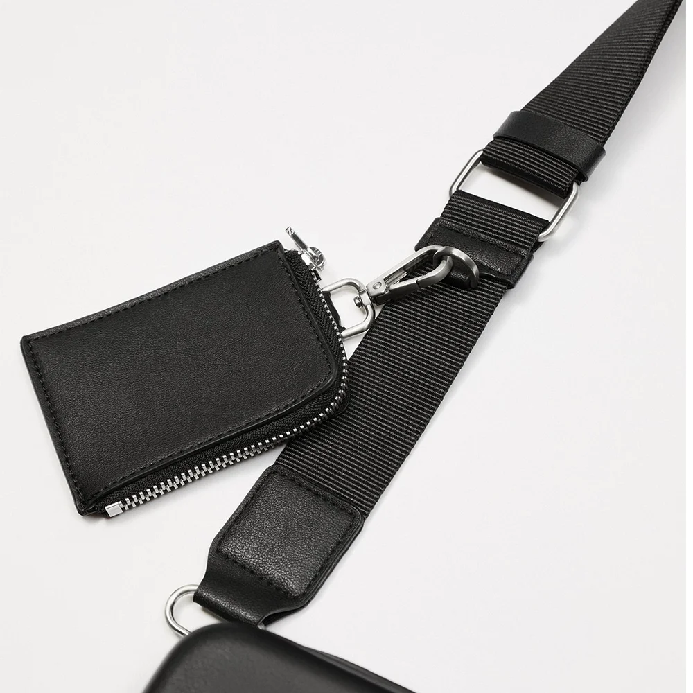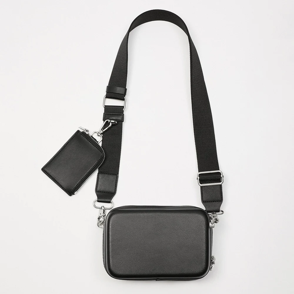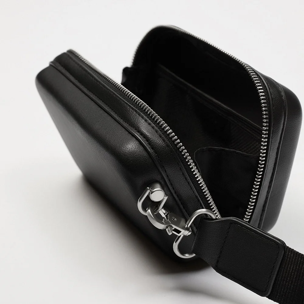 Wholesale Black Leather Rigid Multi Pouch Men's Crossbody Sling Shoulder Bag for Men