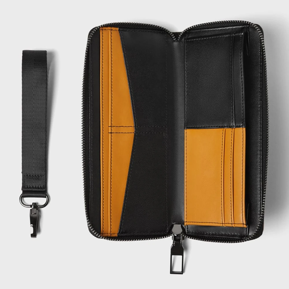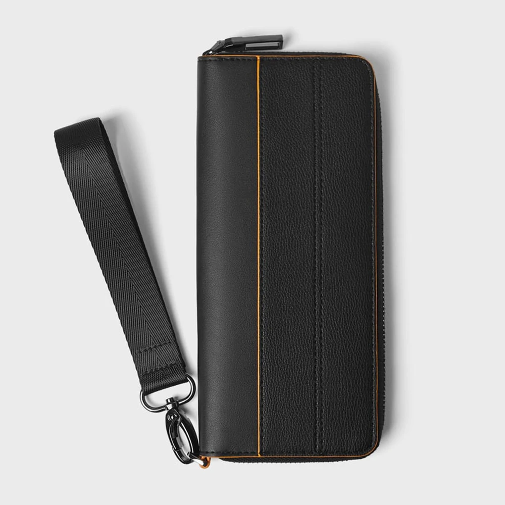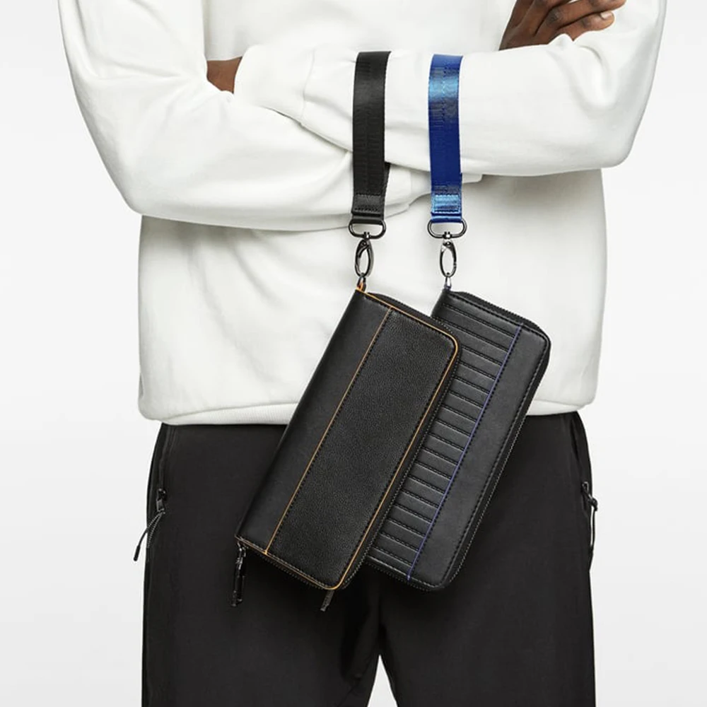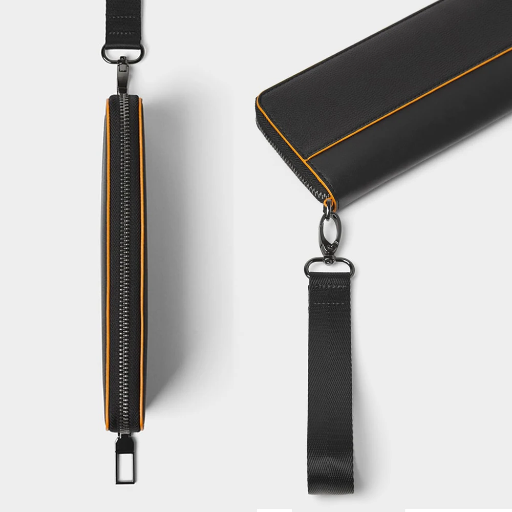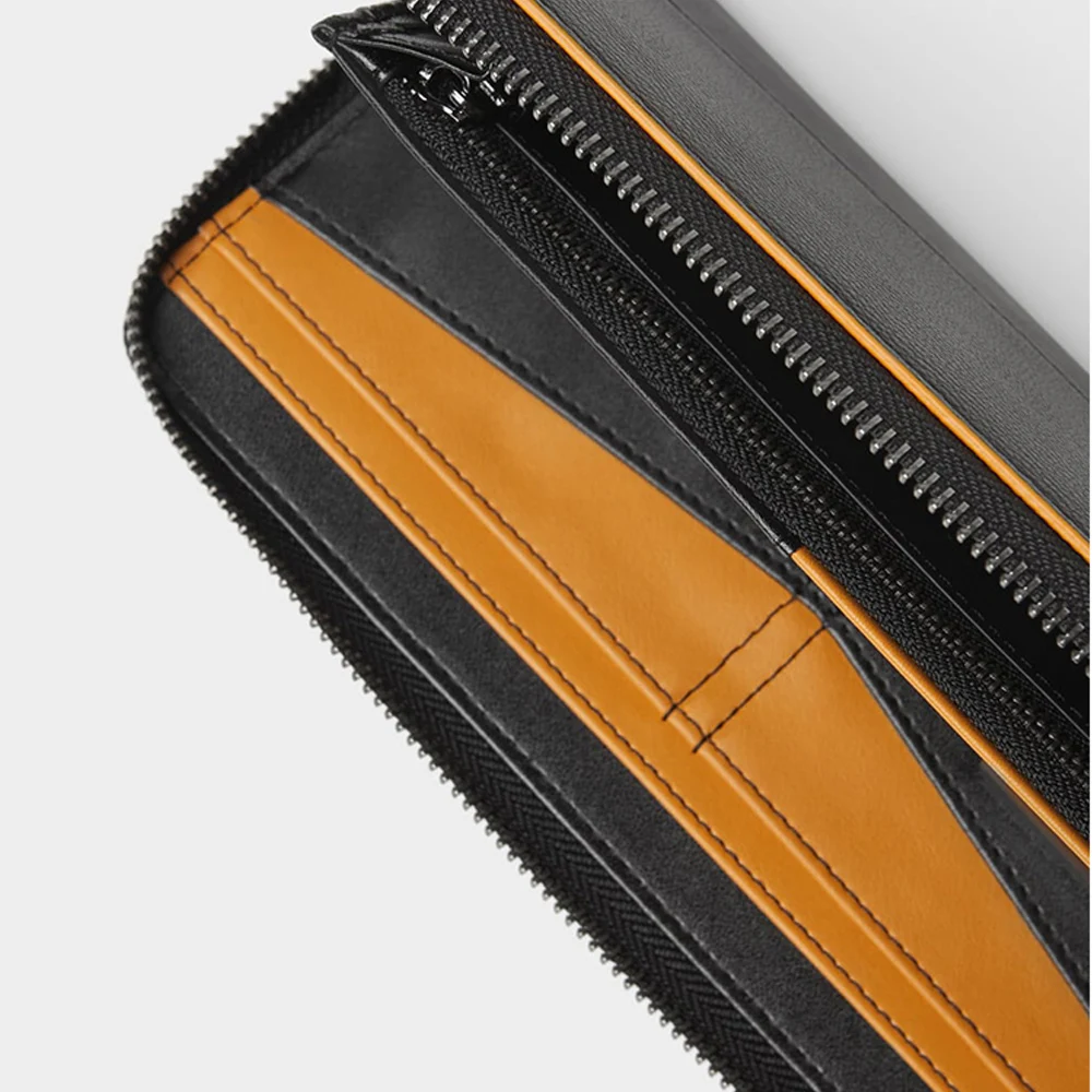 Custom Logo Leather Black Men's Wristlet Zipper Card Phone Long Wallet Money Purse for Men