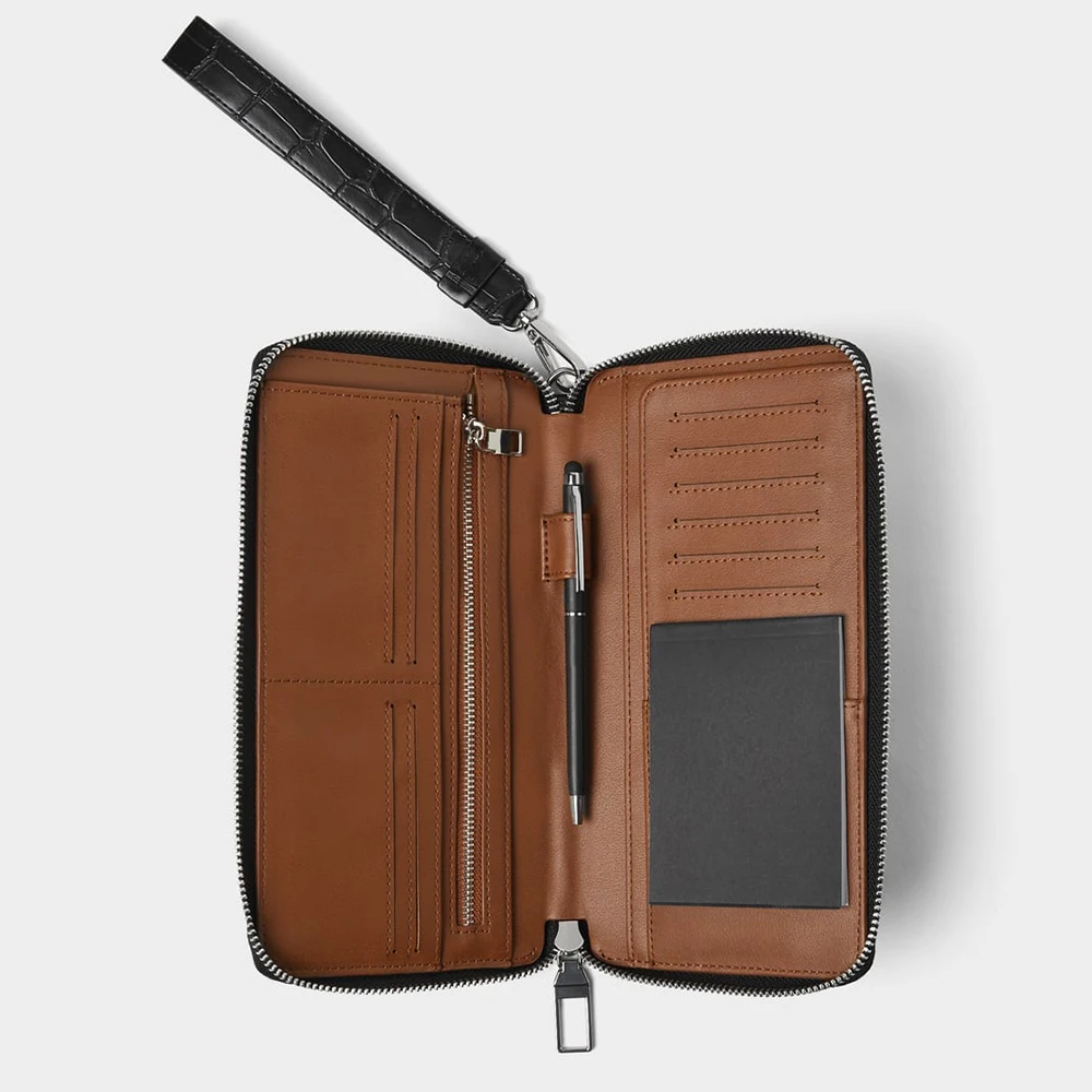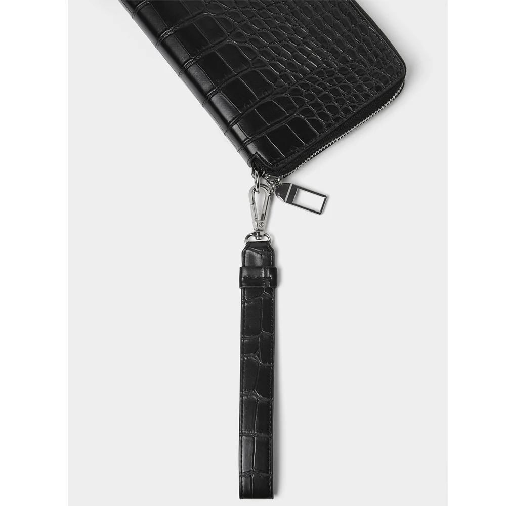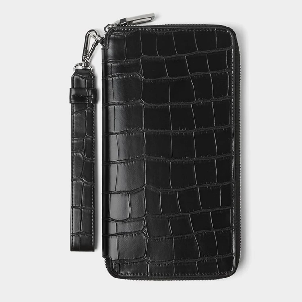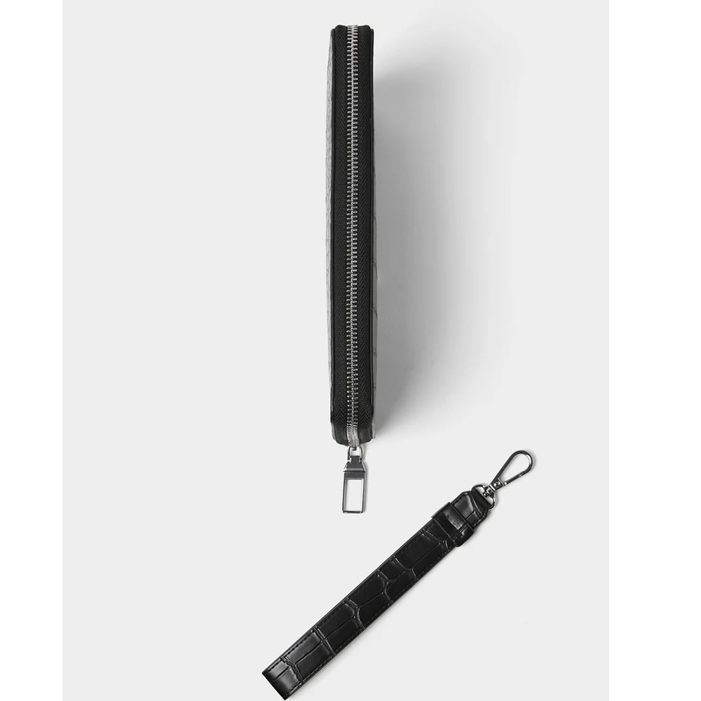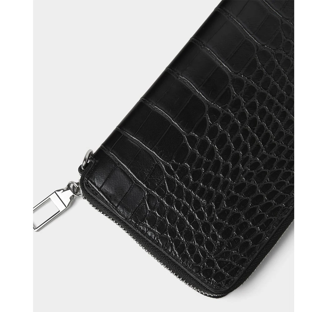 Custom PU Faux Crocodile Leather Black Mens Long Wrist Zipper Card Wallet Money Purse for Men