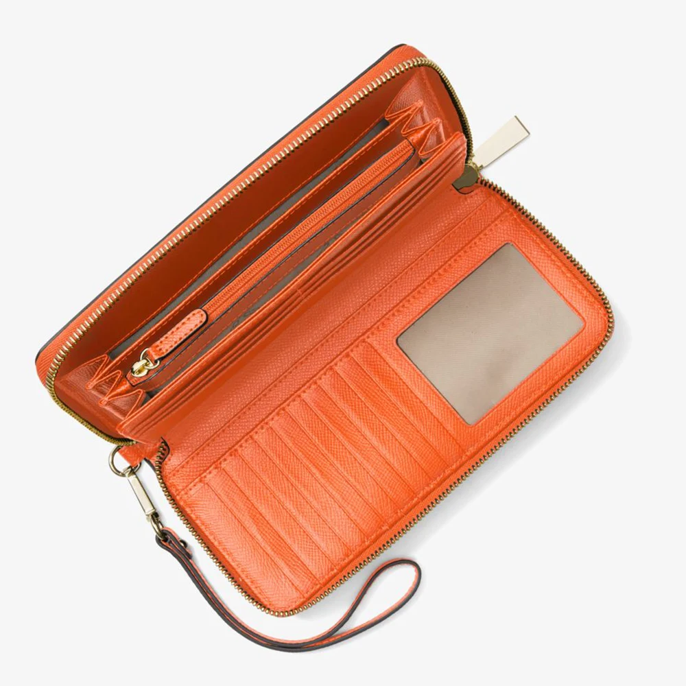 Custom Logo PU Saffiano Leather Ladies Wristlet Long Phone Zipper Wallet Money Purse for Women