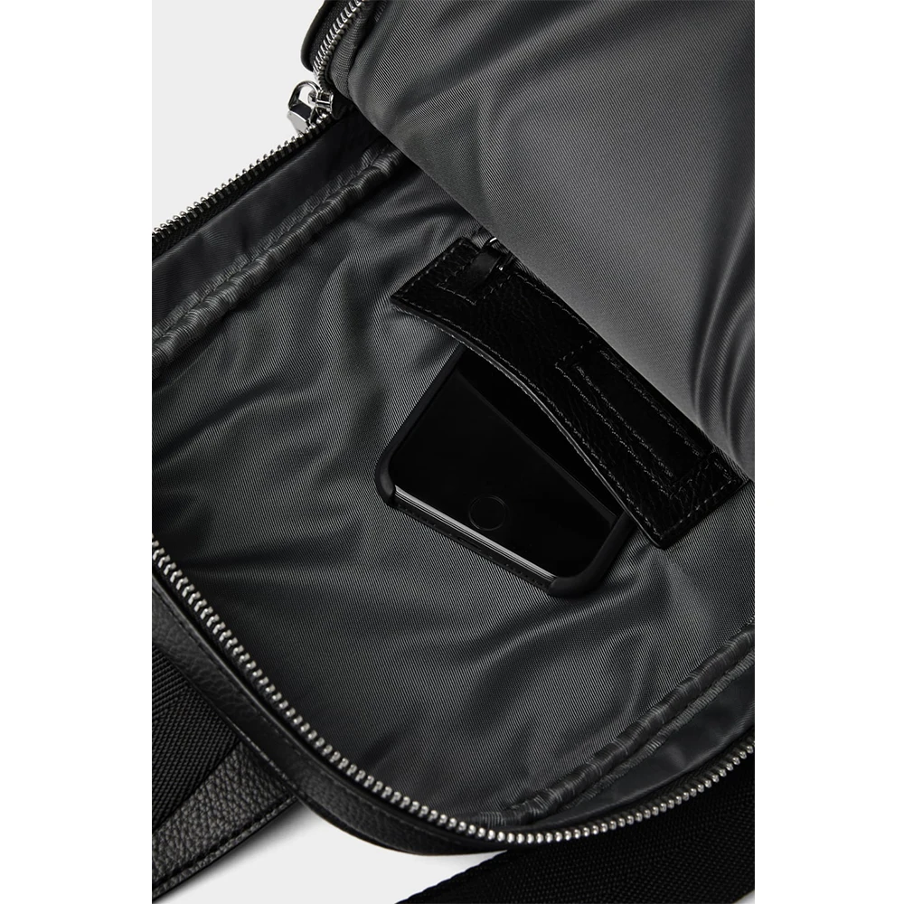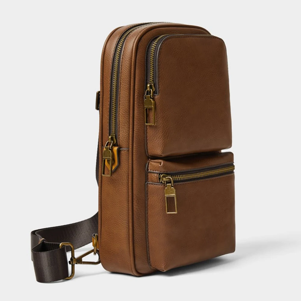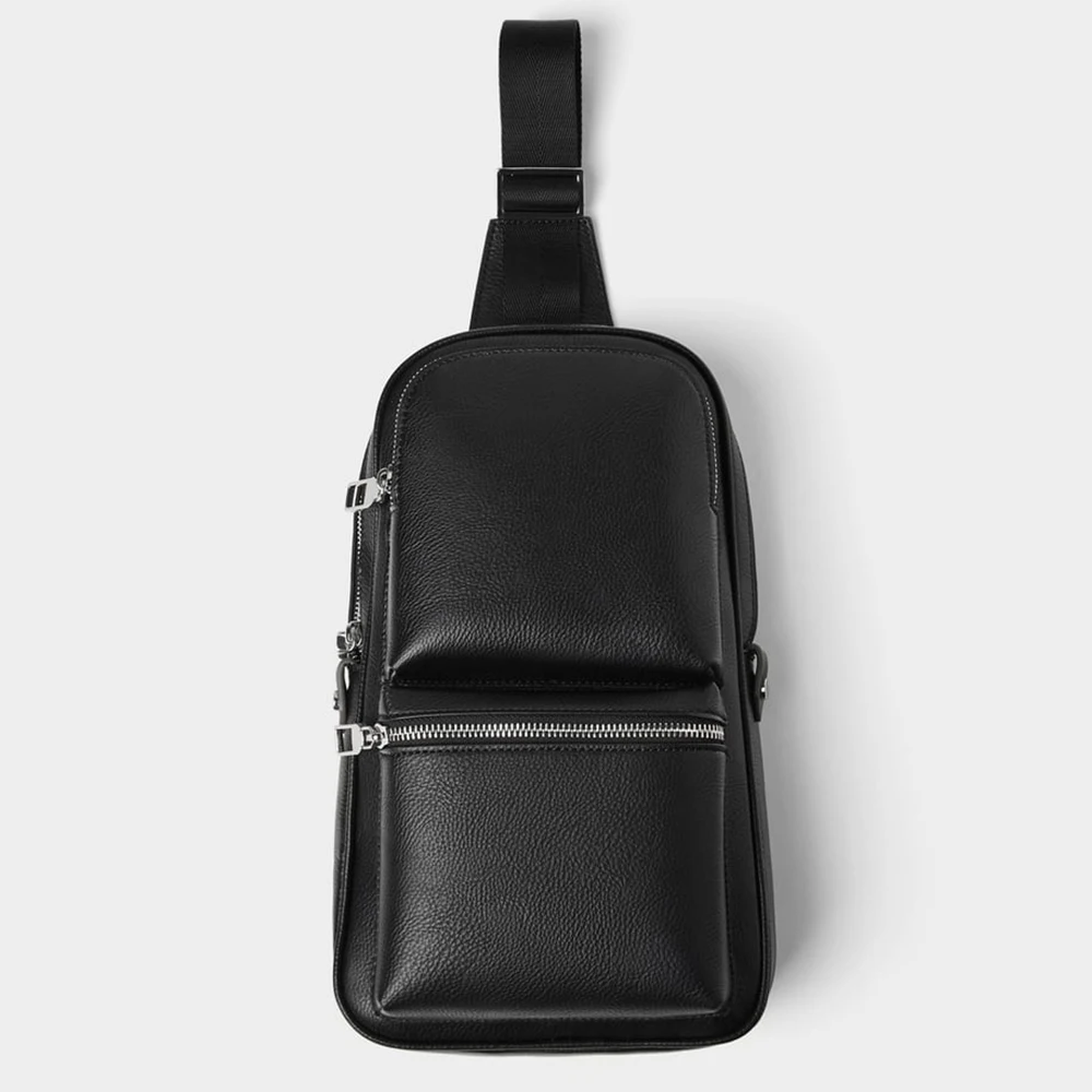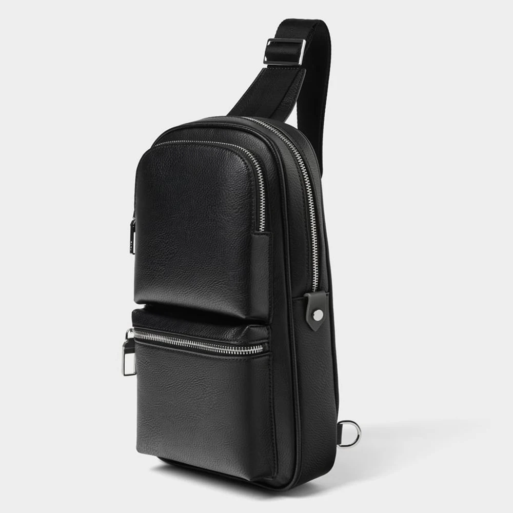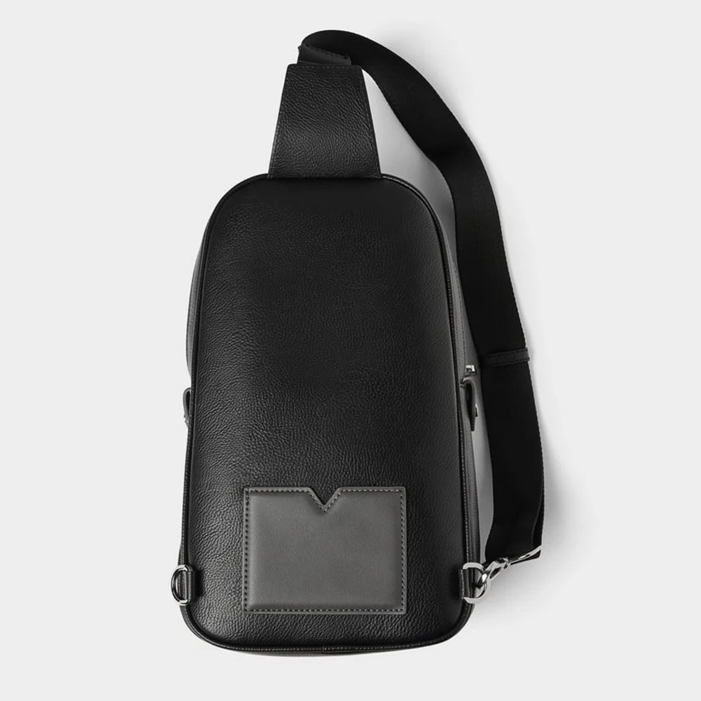 Customized Vegan Leather Black Mens Chest Pack Fashion Crossbody Shoulder Sling Bag for Men