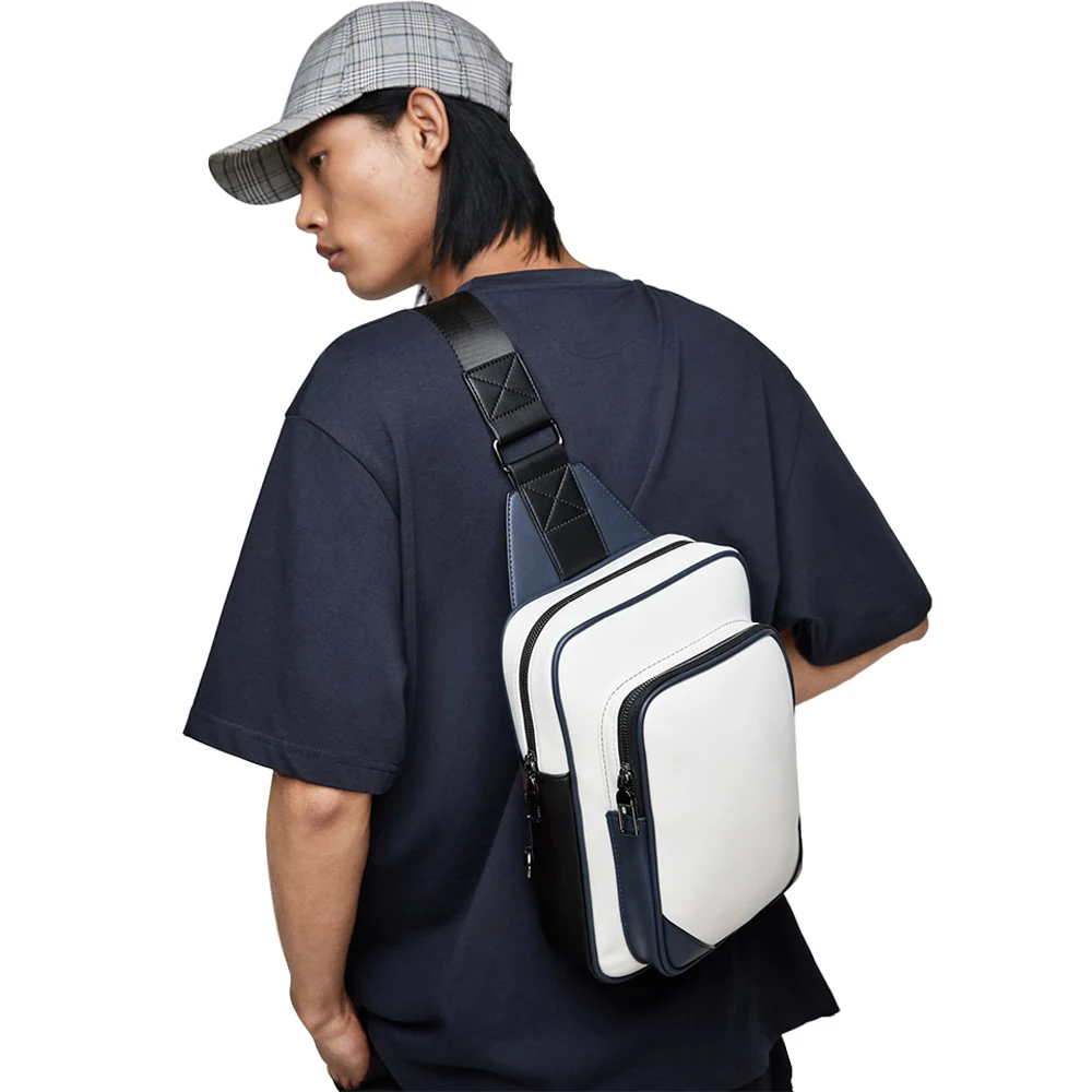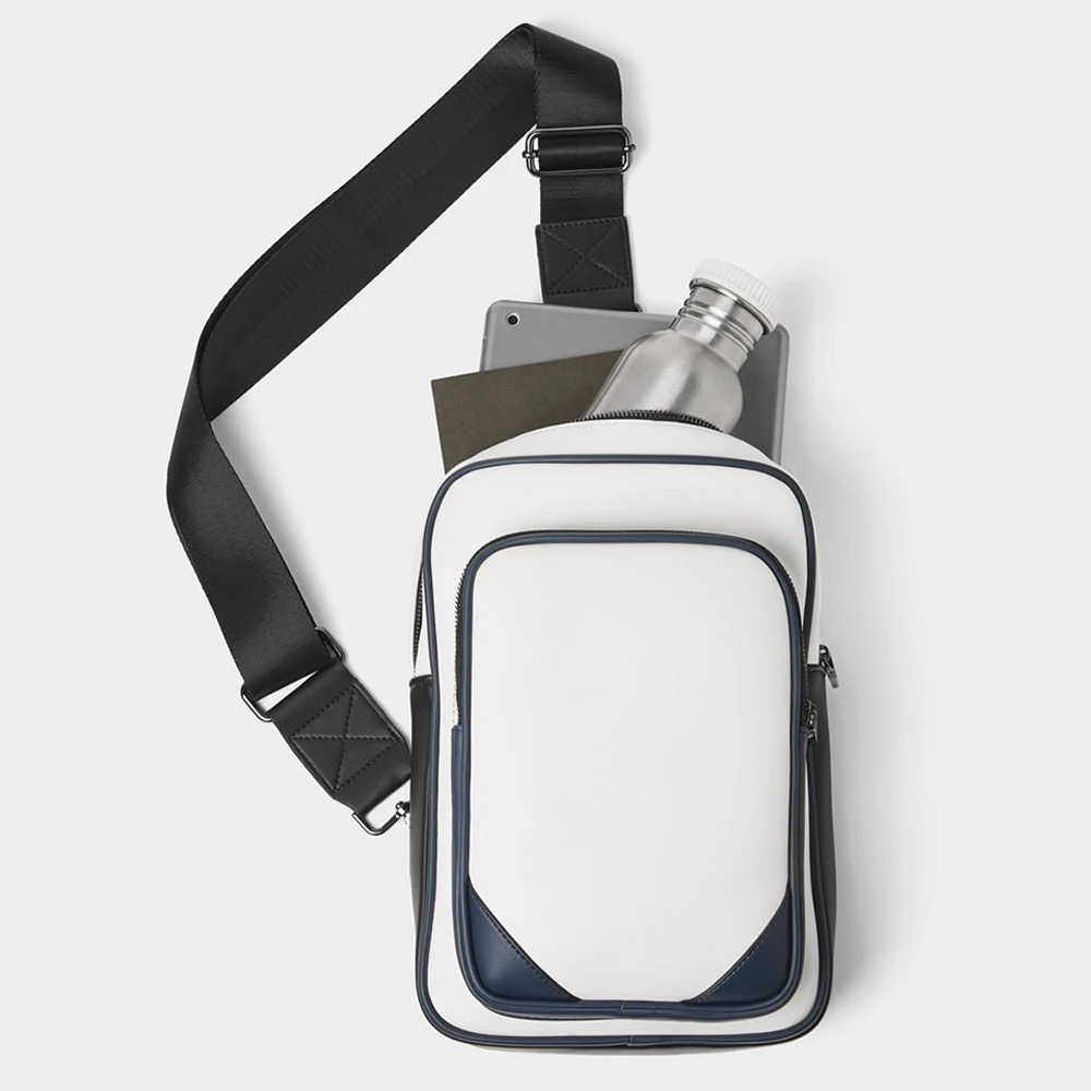 Custom Logo Vegan Leather White Mens Chest Rig Pack Casual Crossbody Shoulder Bag for Men