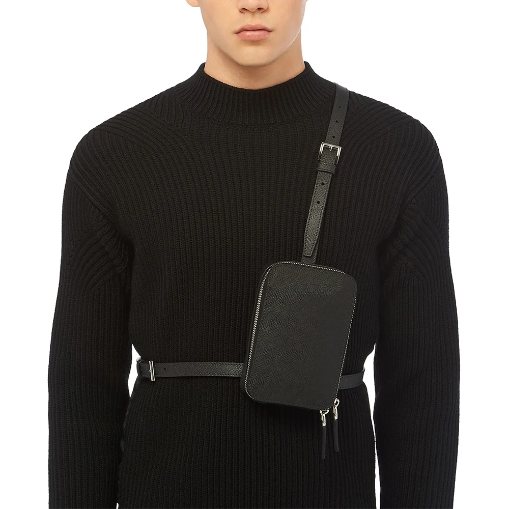 Custom Logo Saffiano Leather Black Men's Chest Rig Pack Small Crossbody Harness Bag for Men