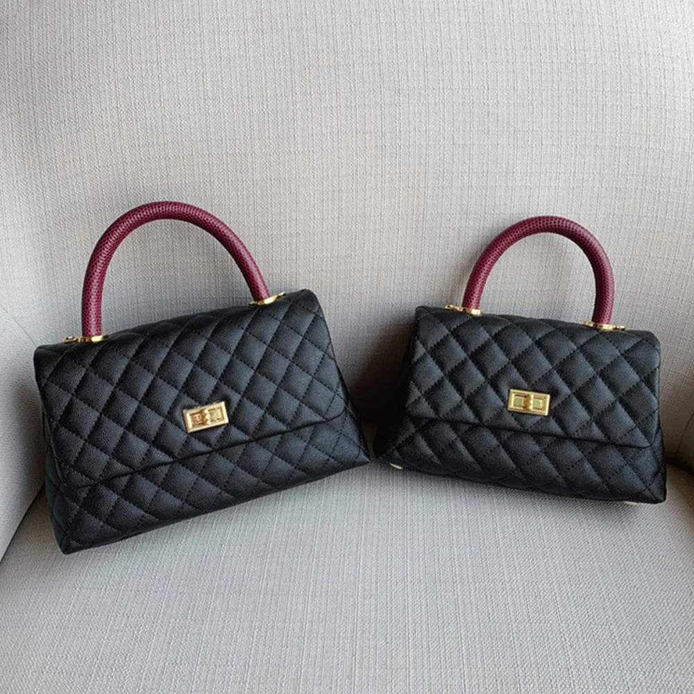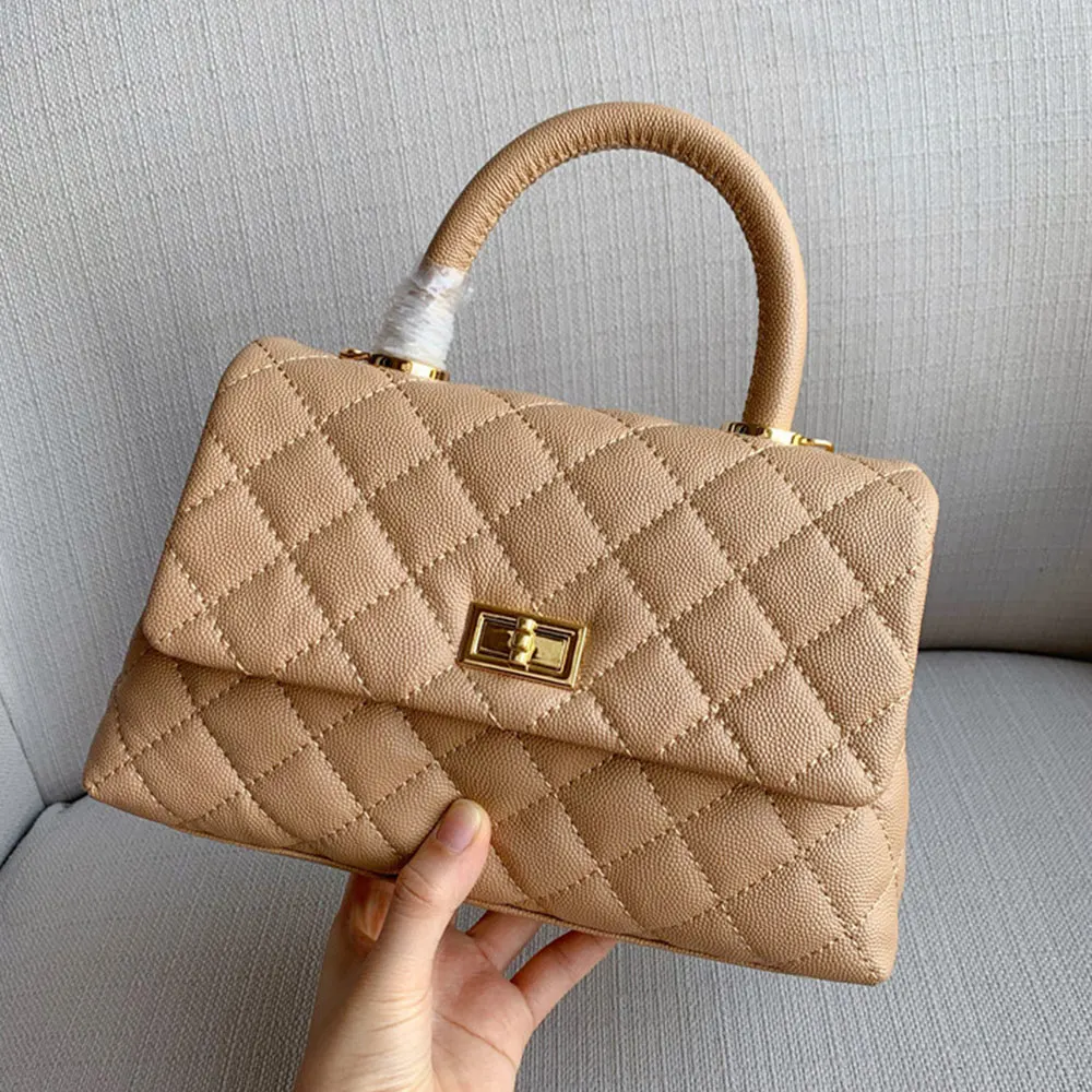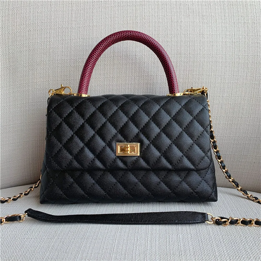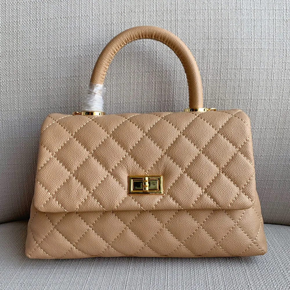 Wholesale Genuine Quilted Caviar Leather Ladies Classic Top Handle Designer Handbag Purse for Women