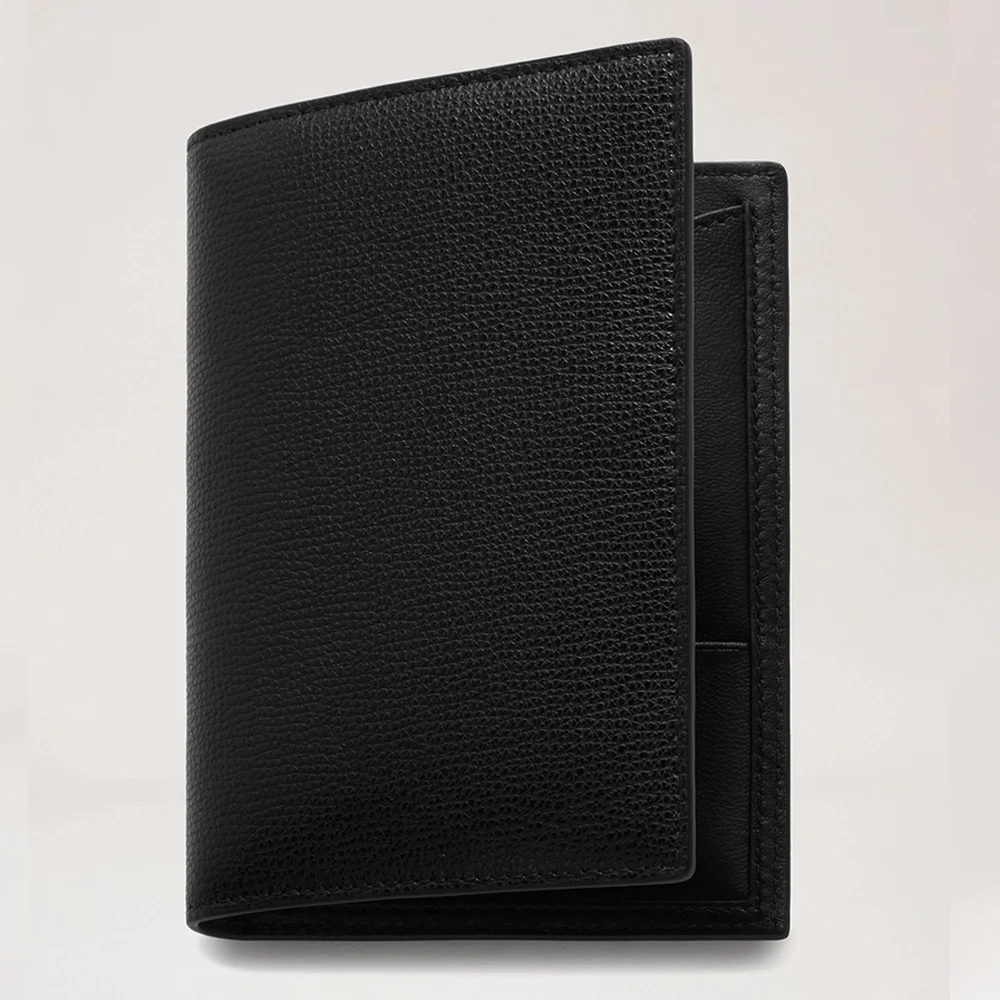 Custom Logo Pebble Leather Black Ladies Travel Passport Cover Holder Wallet for Women