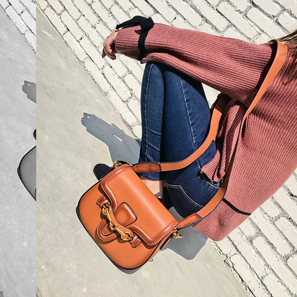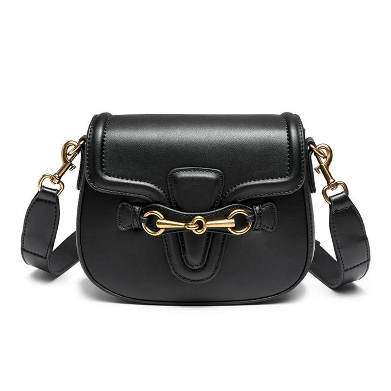Wholesale Black PU Leather Women Fashion Crossbody Pack Shoulder Messenger Saddle Bag