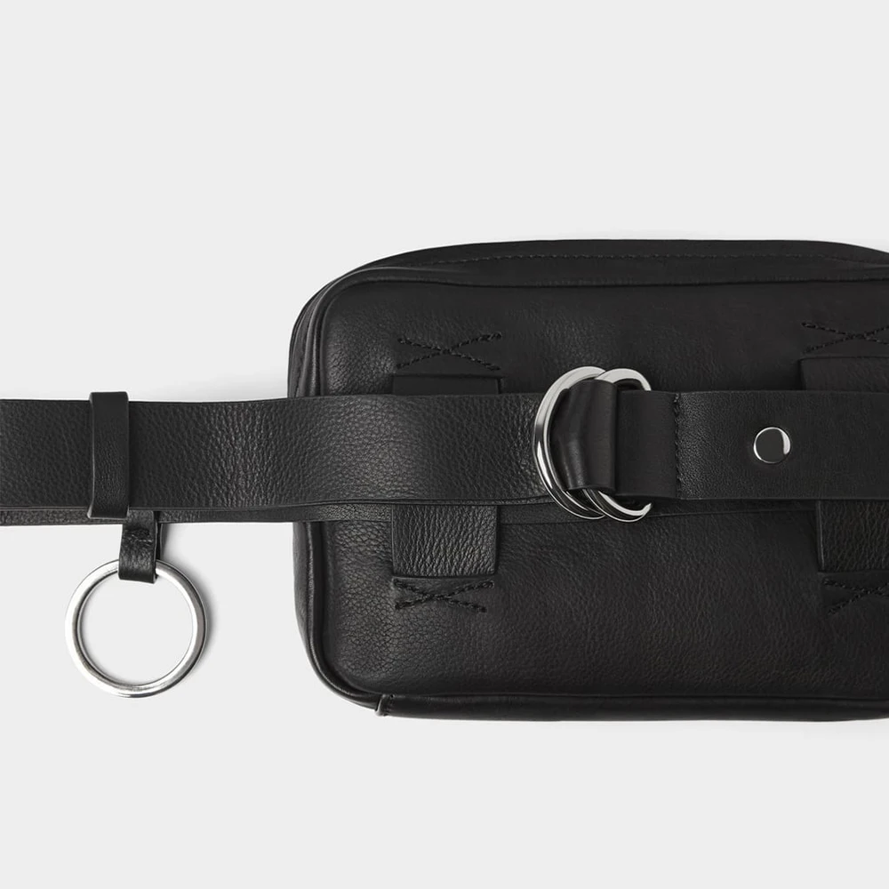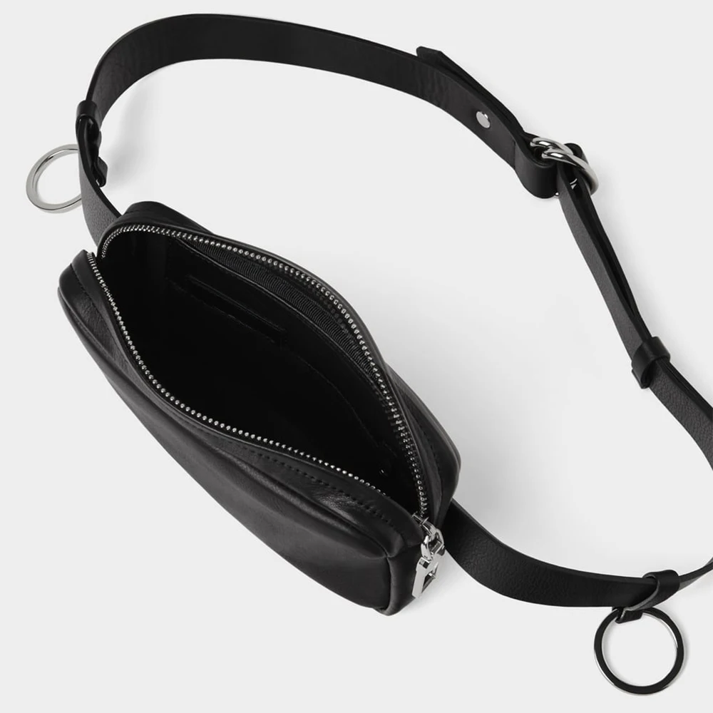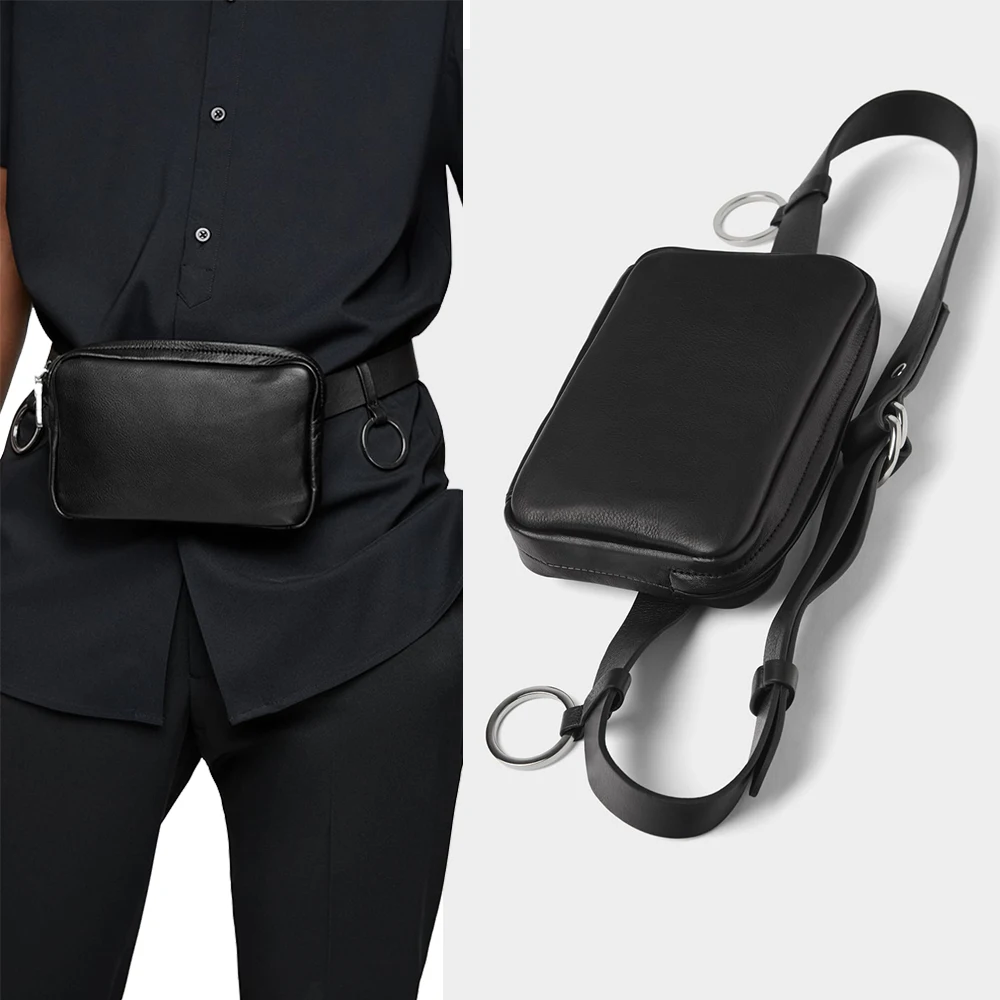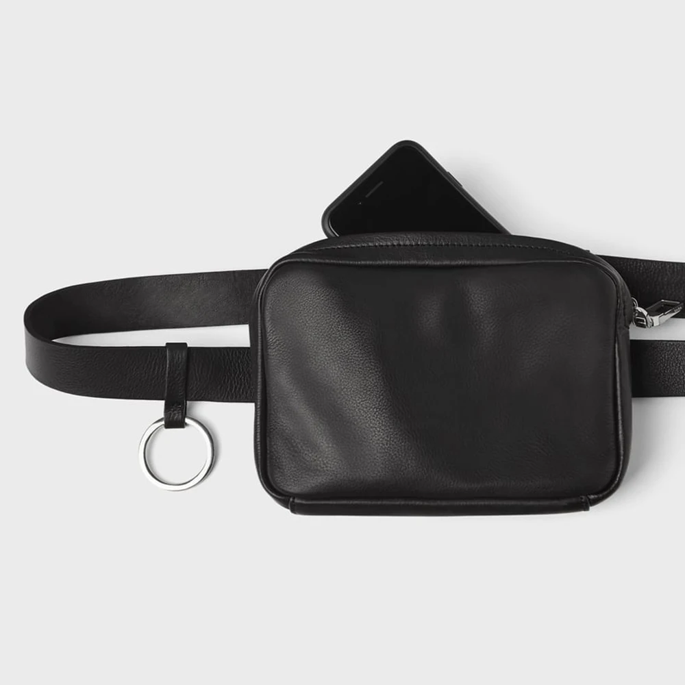 Custom Vegan PU Leather Black Men's Fanny Pack Bumbag Zipper Belt Pouch Waist Bag for Men