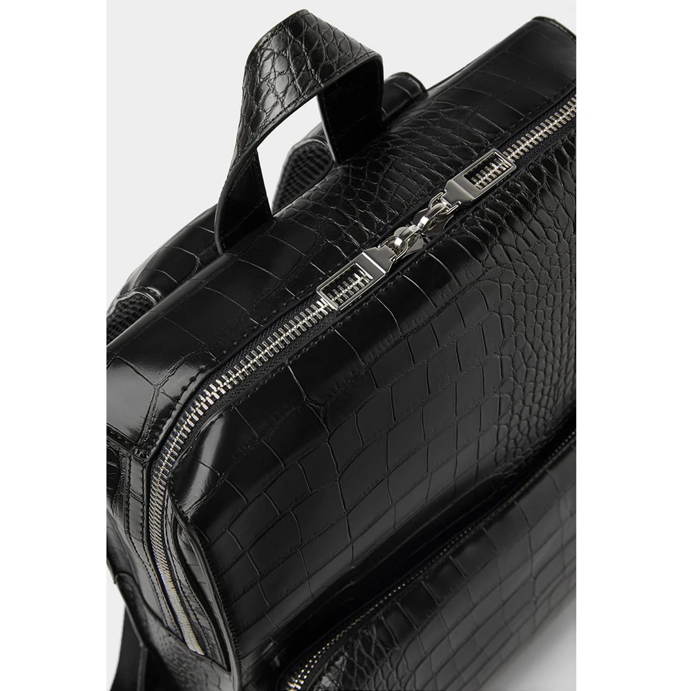 Custom Logo Luxury Croc PU Leather Black Mens School Laptop Backpack Bag Bagpack for Men Teen
