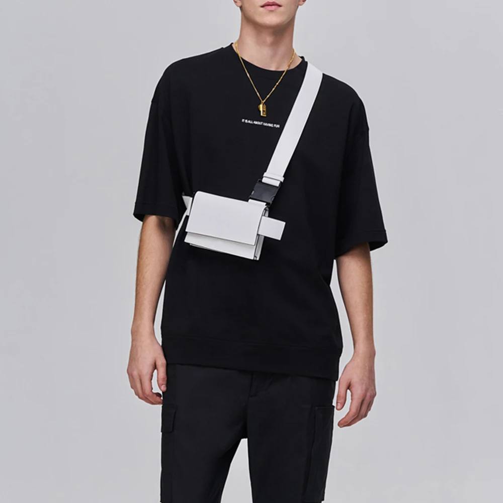 Custom Logo Leather White Mens Fashion Harness Chest Rig Pack Crossbody Shoulder Bag for Men