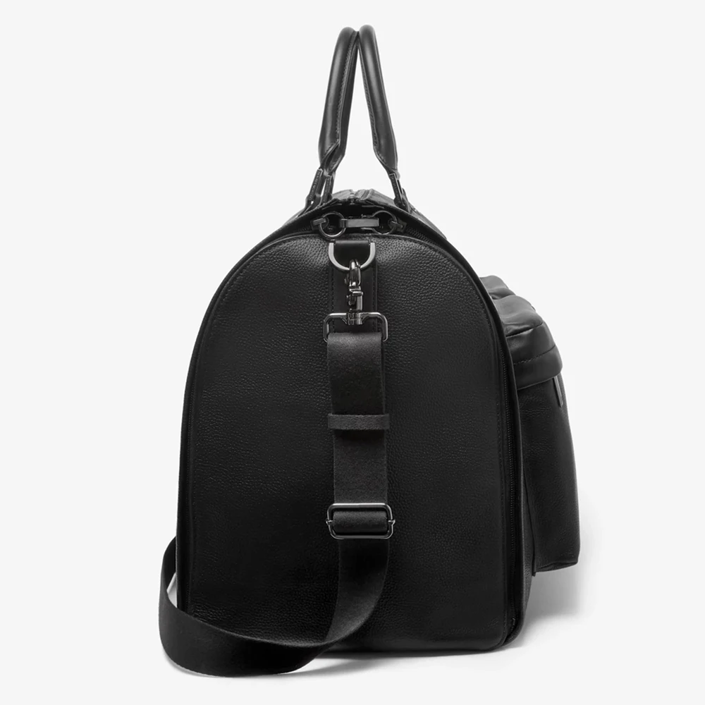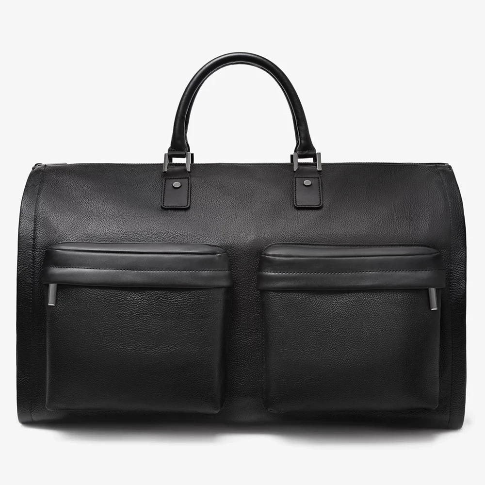 Custom Logo Pebble Leather Black Mens Travel Garment Suit Duffle Weekender Bag