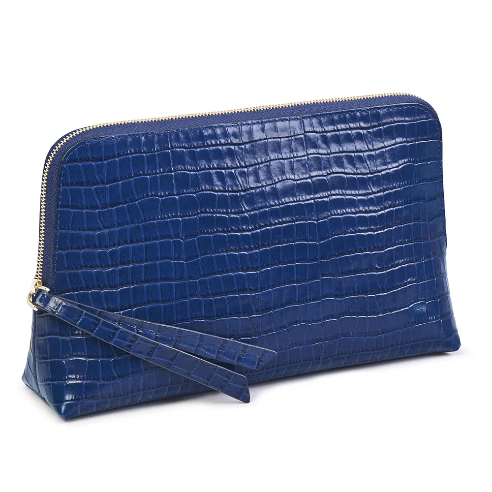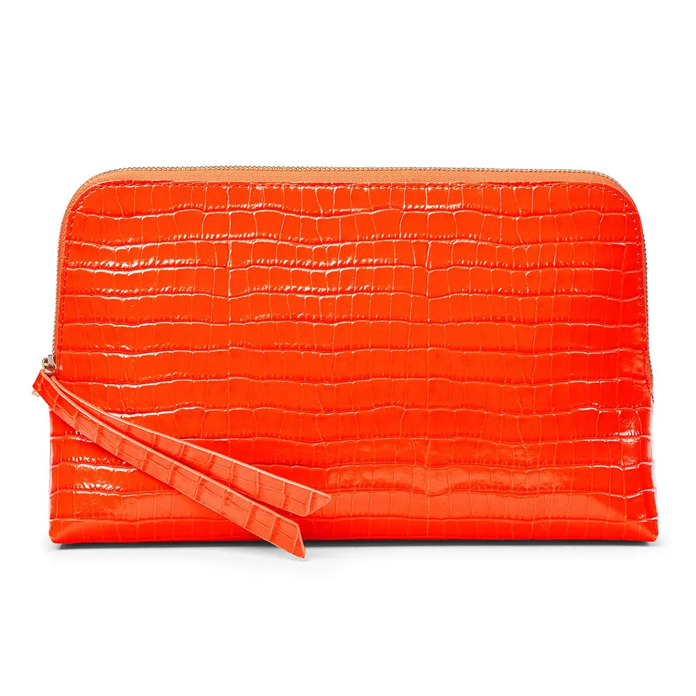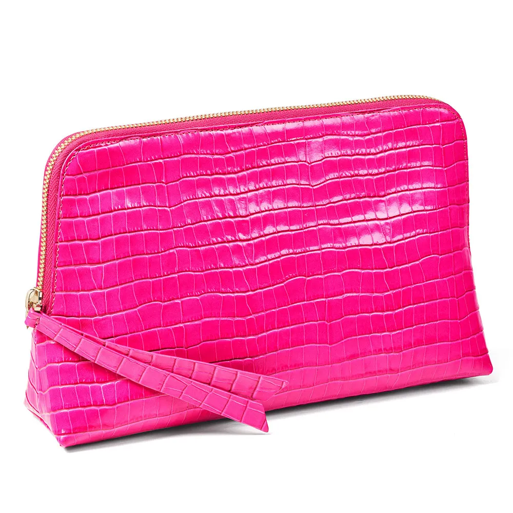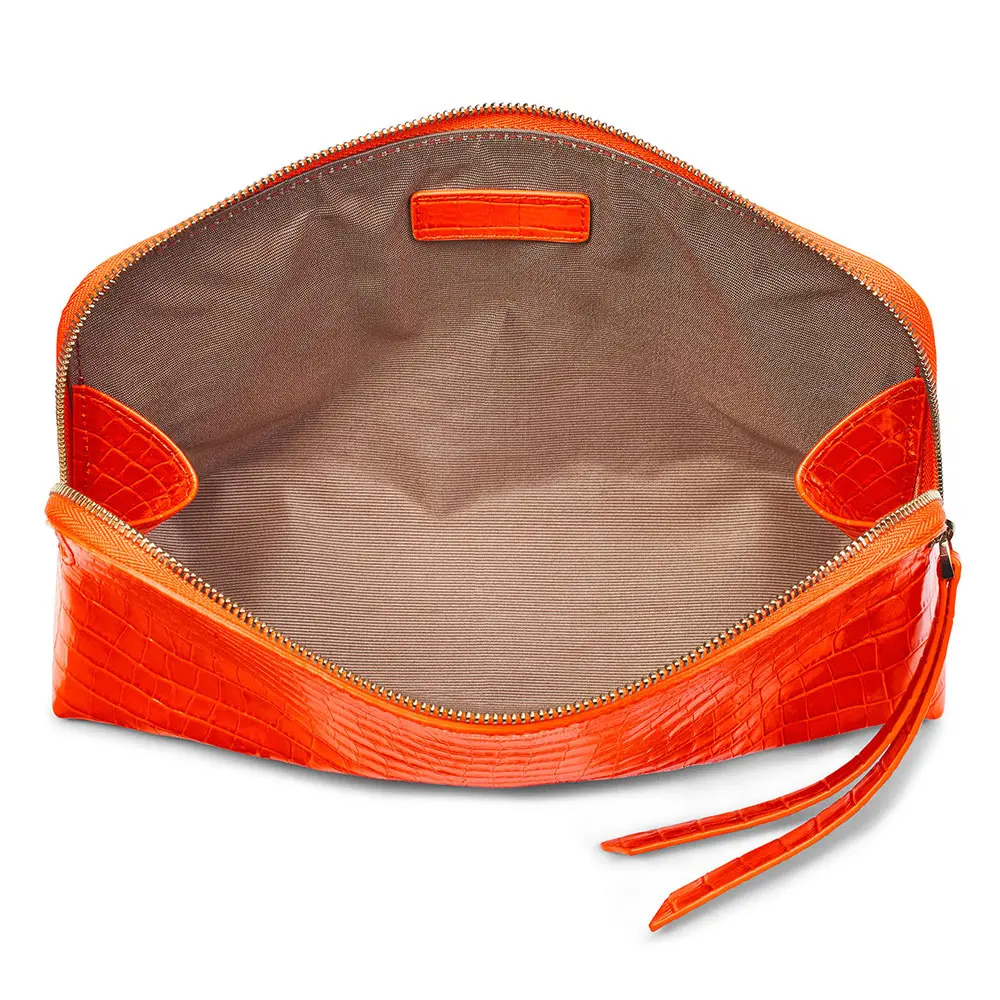 Custom Logo Croc Leather Orange Ladies Makeup Bag Women Large Zipper Travel Cosmetic Case Pouch