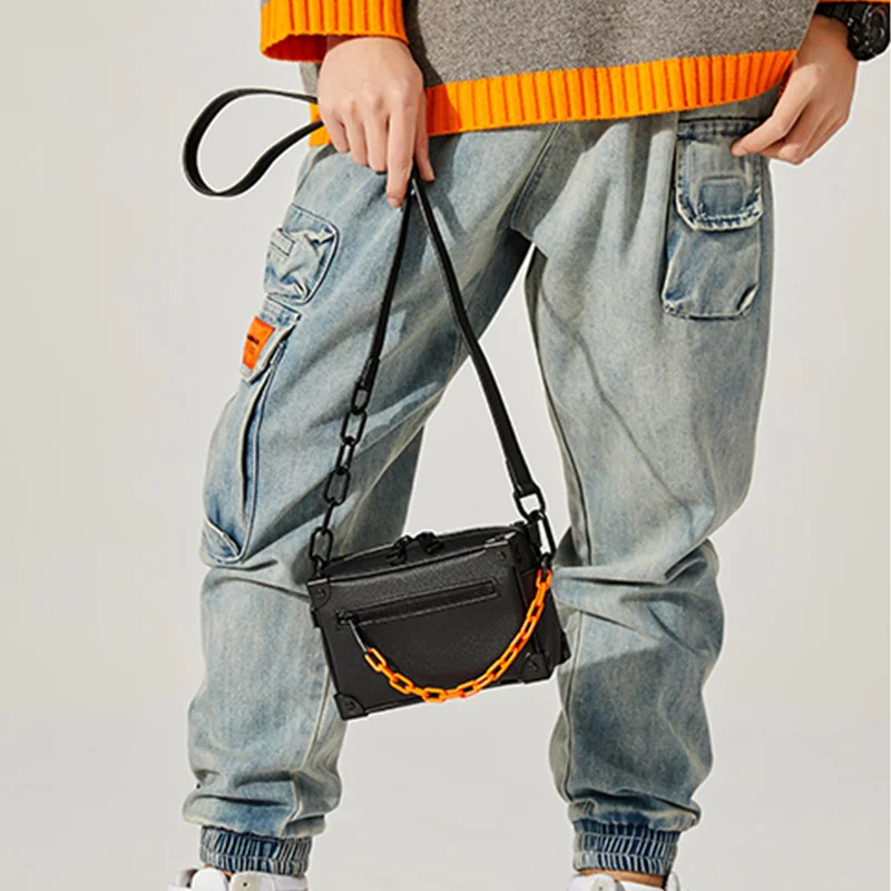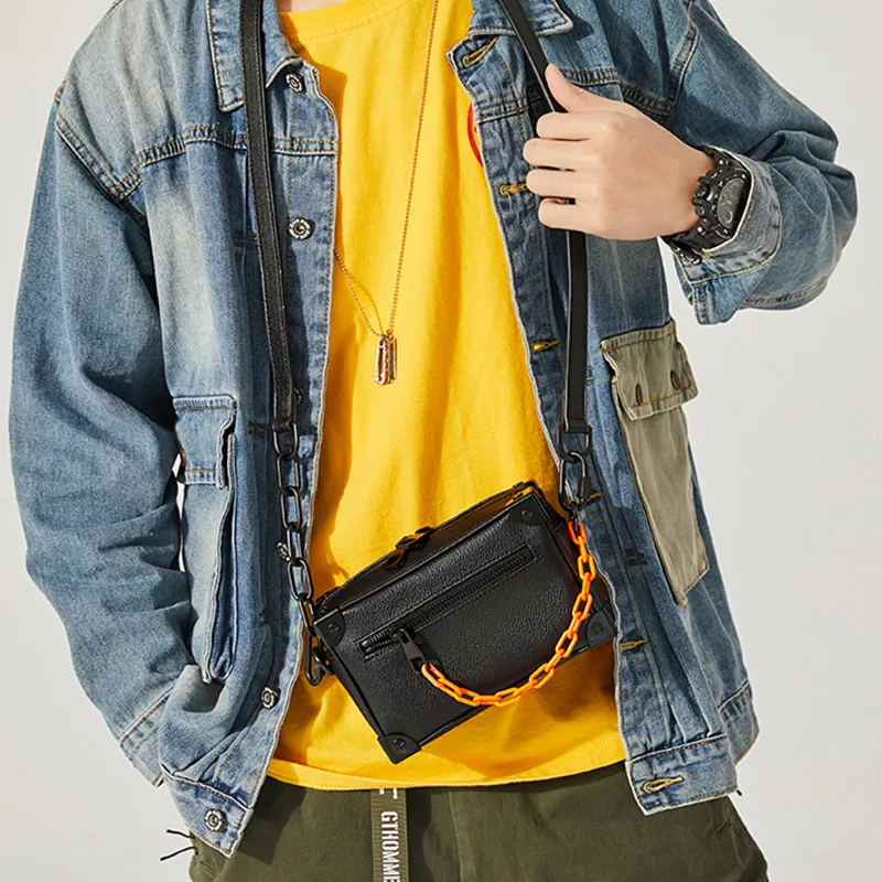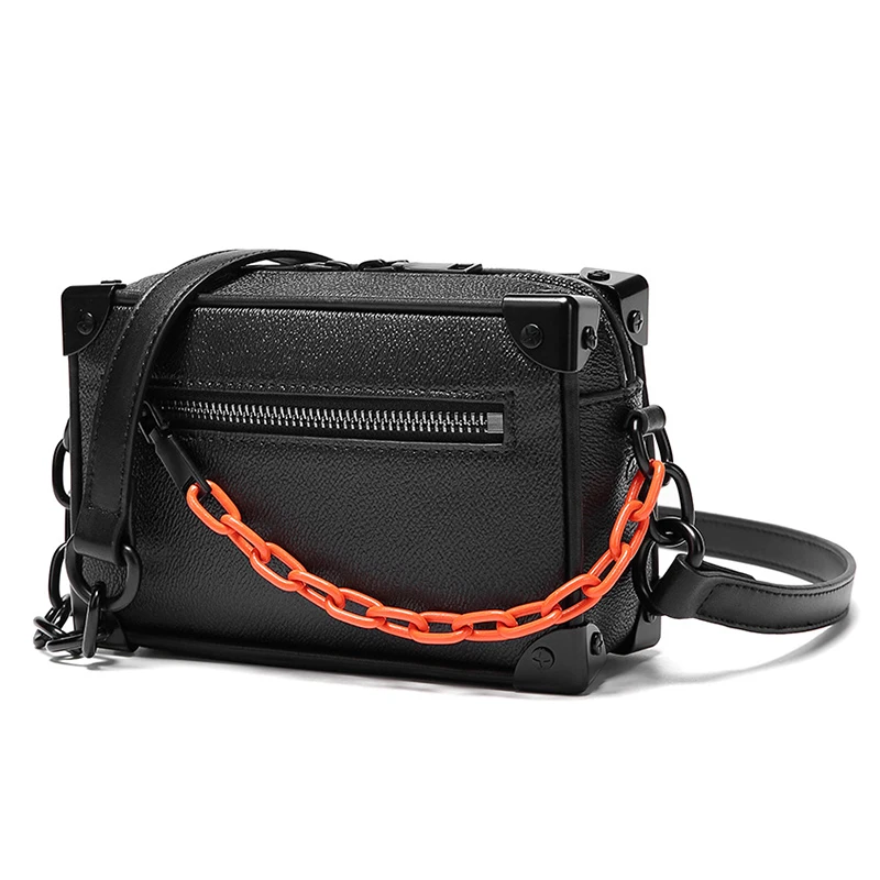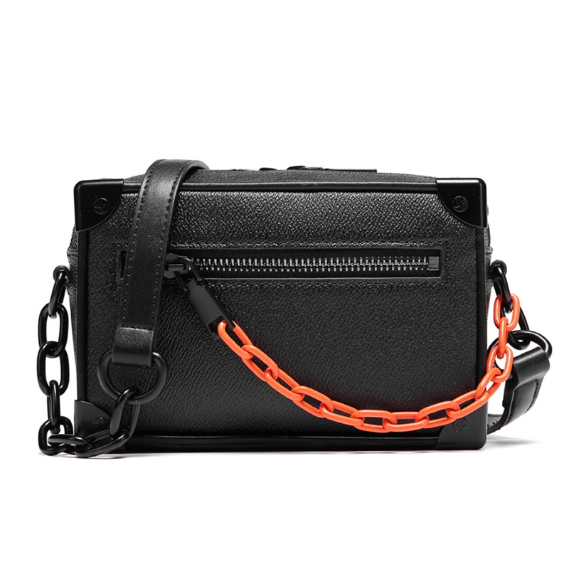 Wholesale Crossgrain Leather Black Mens Small Crossbody Pack Shoulder Messenger Bag With Chain