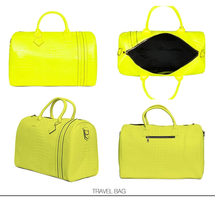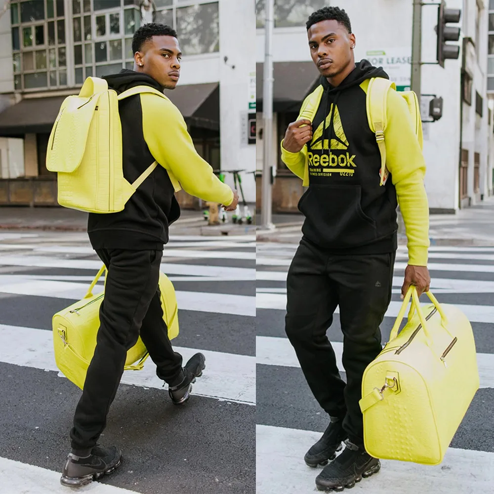 Custom Logo Luxury Croc Leather Neon Yellow Unsex Mens Women Duffle Weekender Travel Bag and Backpack Set