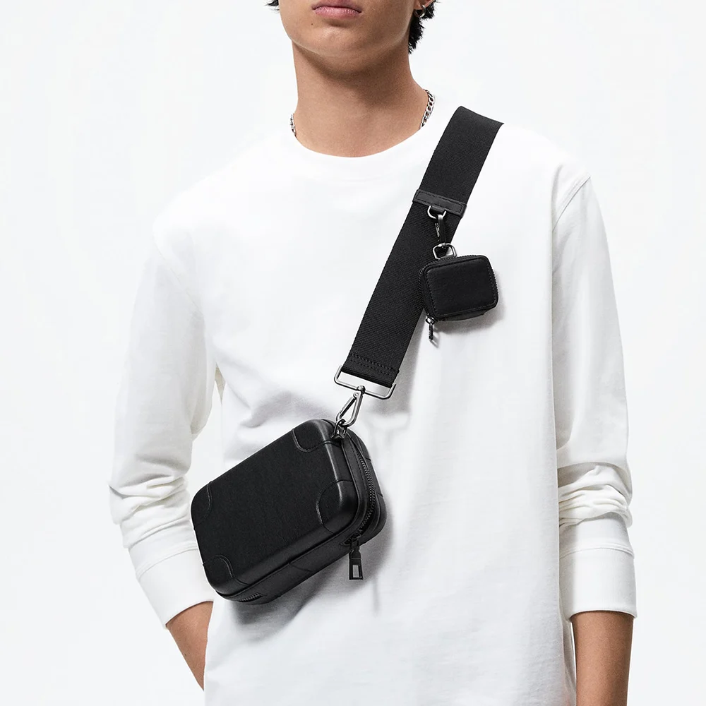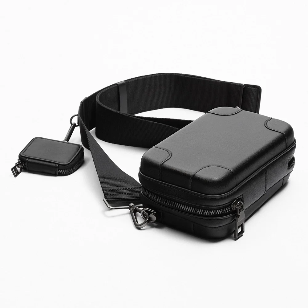 Wholesale Black PU Leather Fashion Mens Crossbody Purse 2 in 1Rigid Box Shoulder Messenger Bag for Men