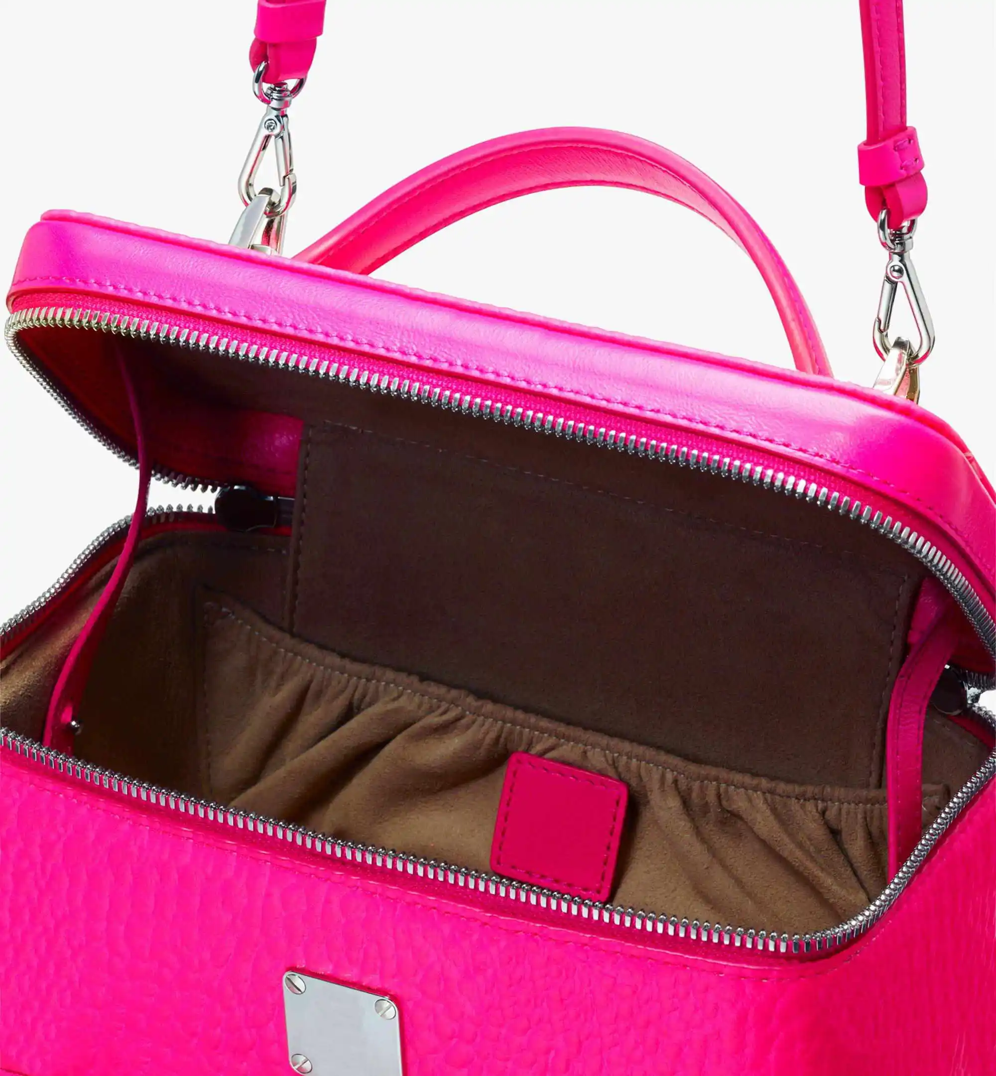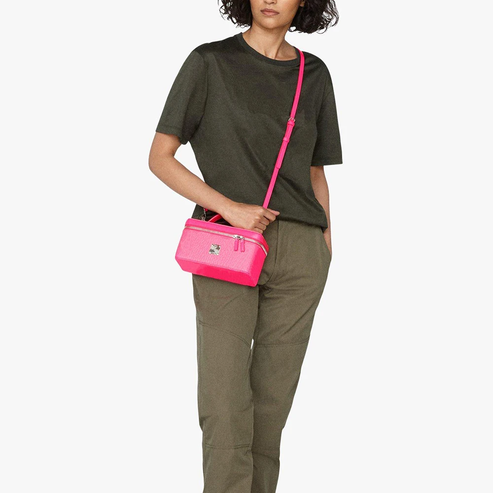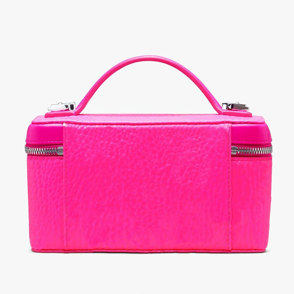 Custom Logo PU Leather Neon Pink Ladies Makeup Vanity Case Women Travel Cosmetic Bag
