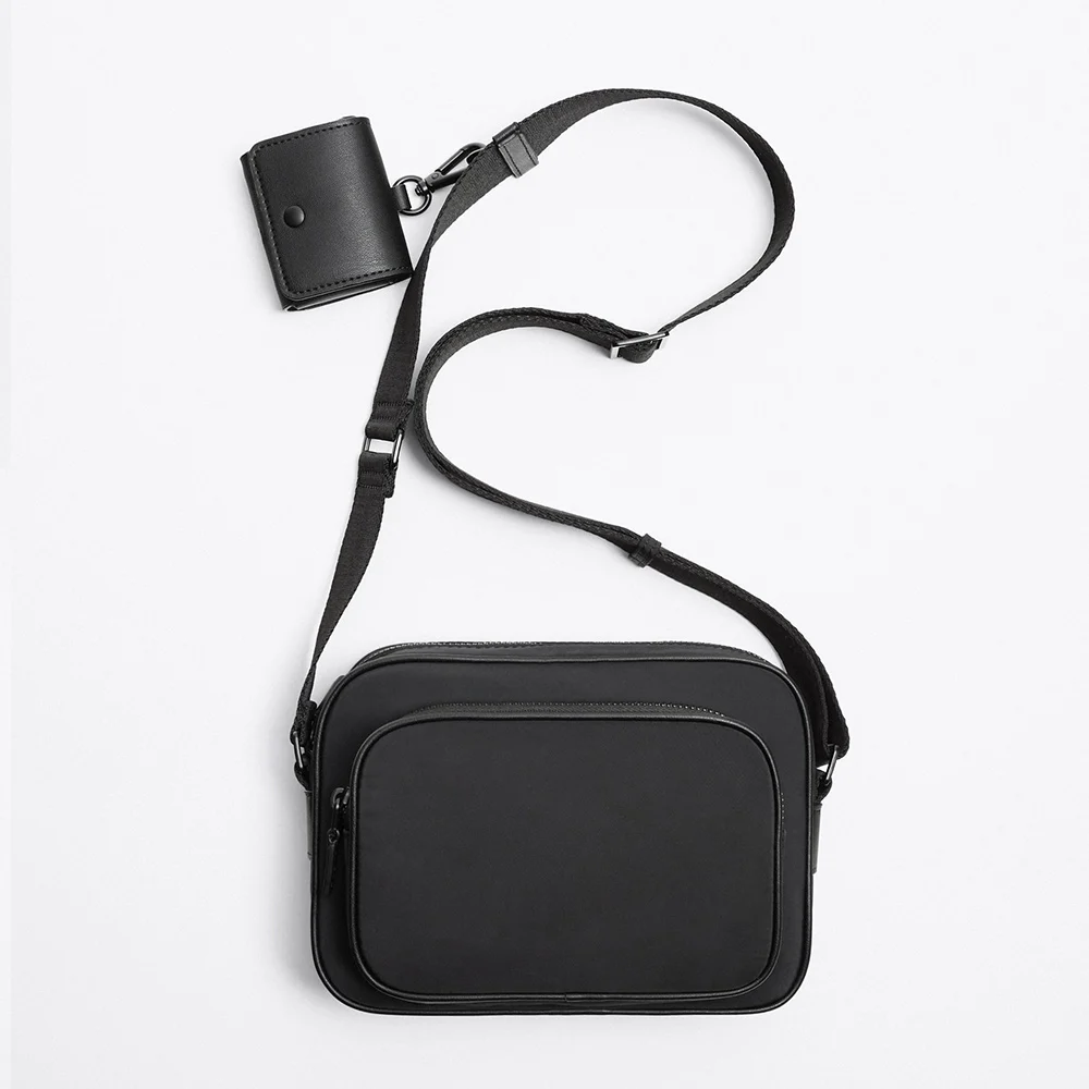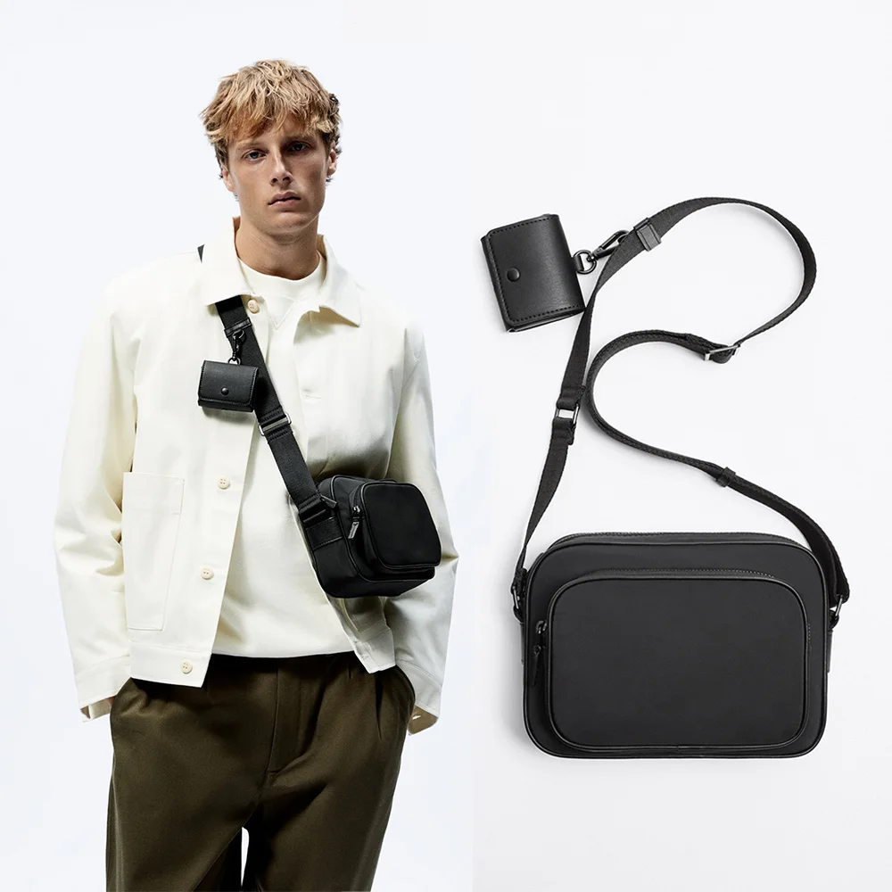 New Fashion 2 in 1 Black Nylon Men's Crossbody Shoulder Sling Side Bag With Earphone Holder for Men