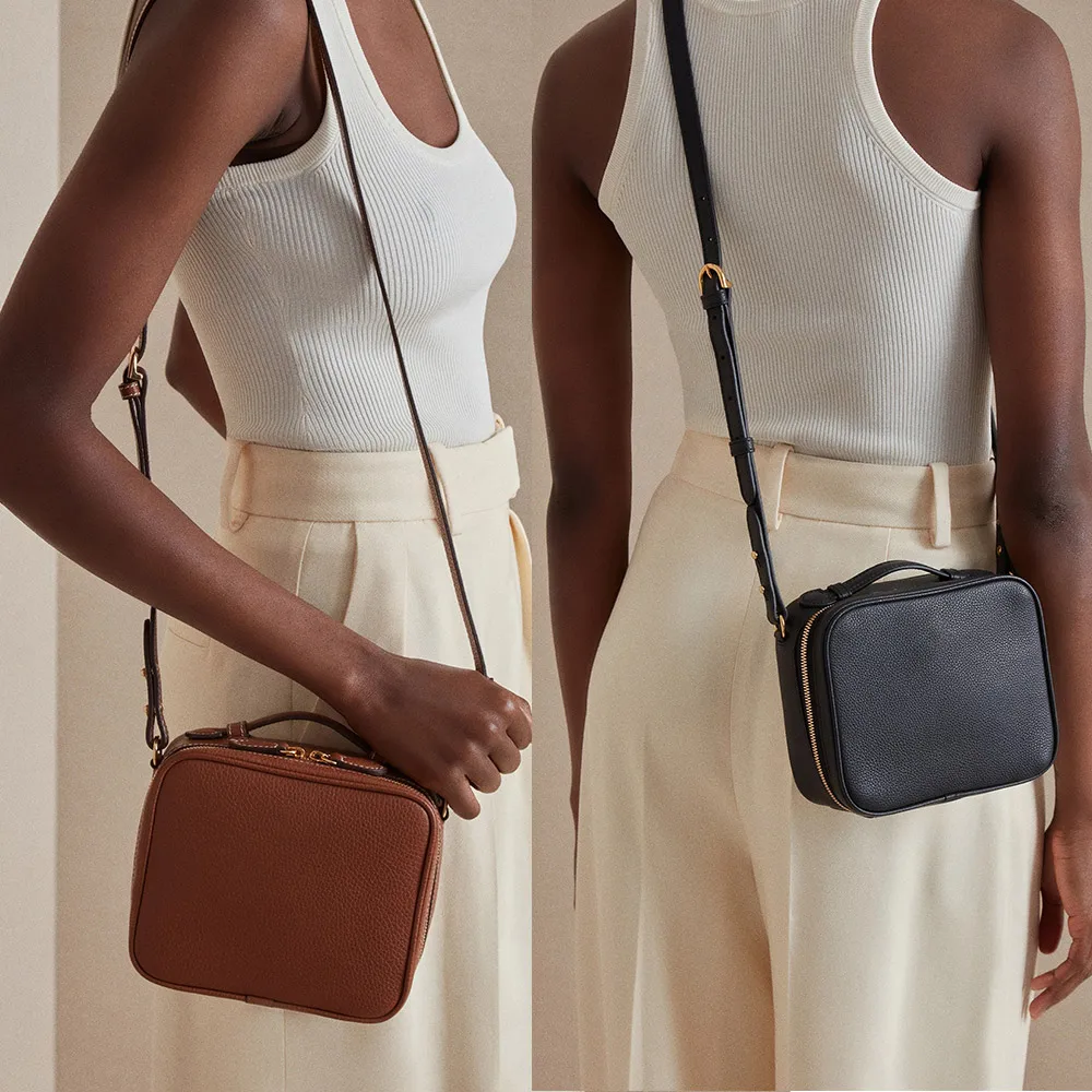 Custom Logo Black Pebble Leather Ladies Square Camera Crossbody Bag Small Handbag Purse for Women