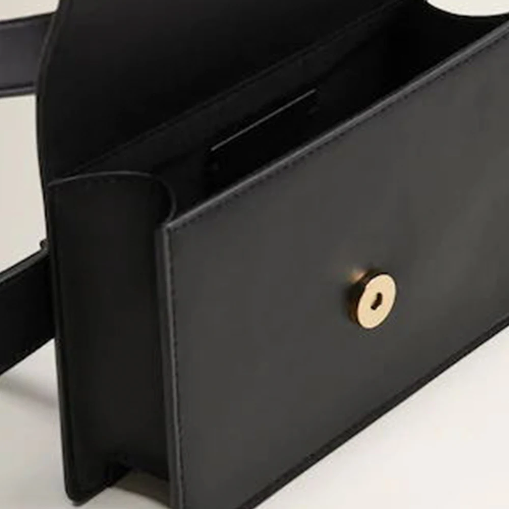 Custom Logo Vegan Leather Ladies Black Belt Bag Fashion Waist Bum Purse Fanny Pack for Women