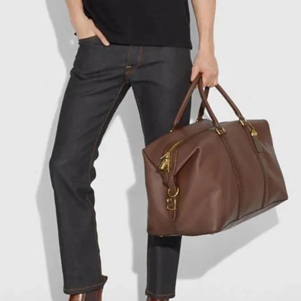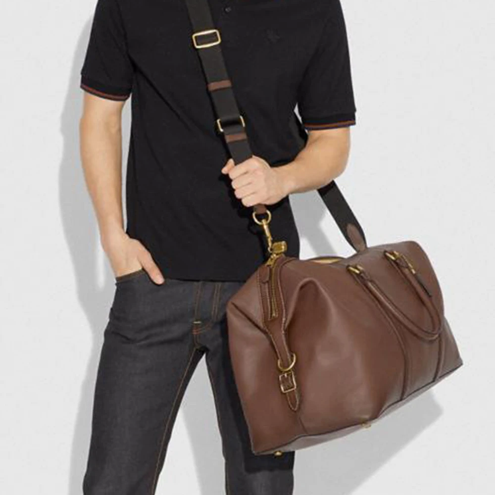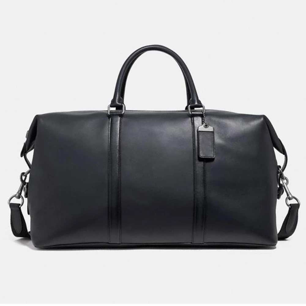 Custom Logo Vegan Leather Black Saddle Men's Travel Outdoor Duffel Weekender Overnight Bag for Men