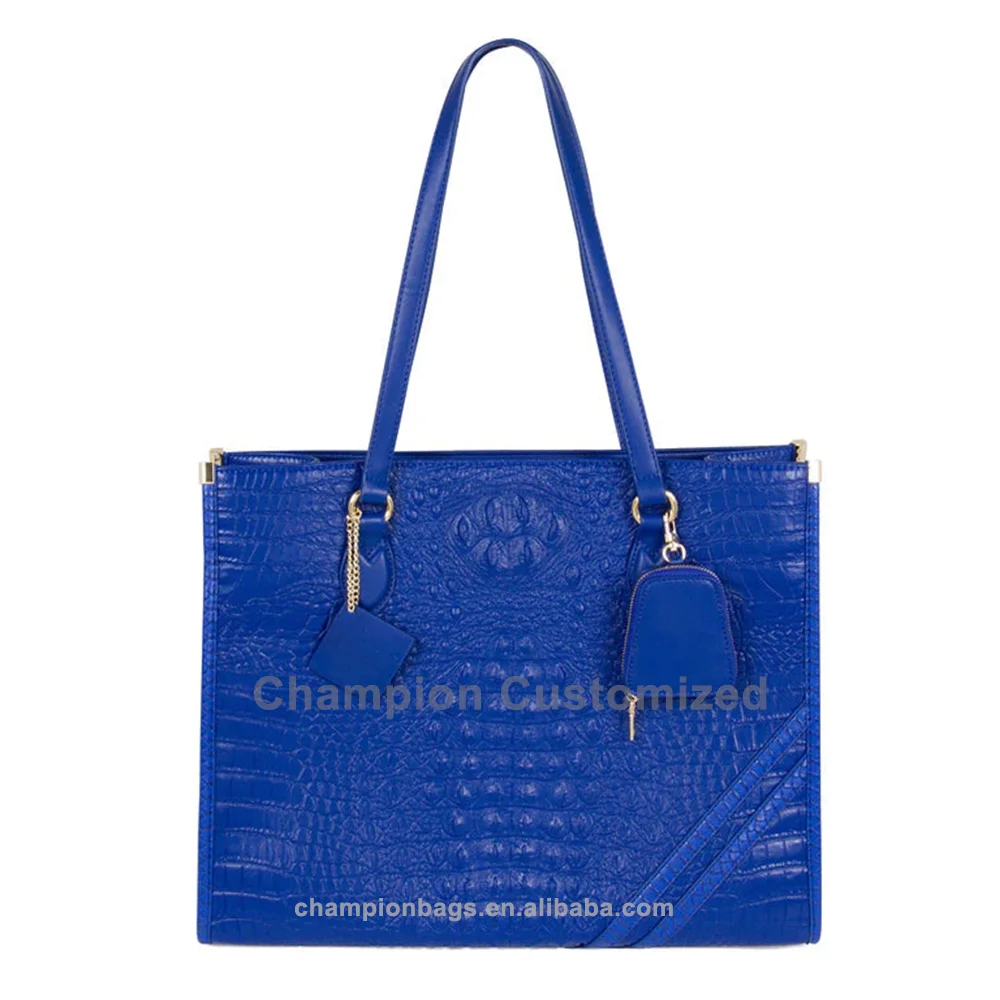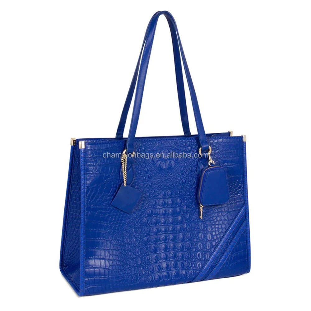 Customized Logo Vegan Croc Leather Royal Blue Ladies Tote Bag Shoulder Handbag Purse for Women