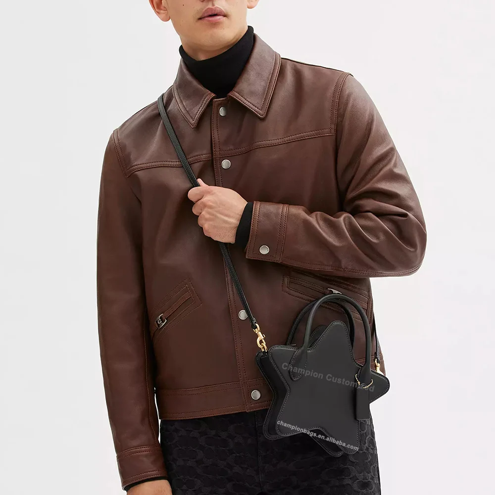 Custom Vegan Leather Star Shape Bag Black Ladies Fashion Crossbody Handbag Purse for Women