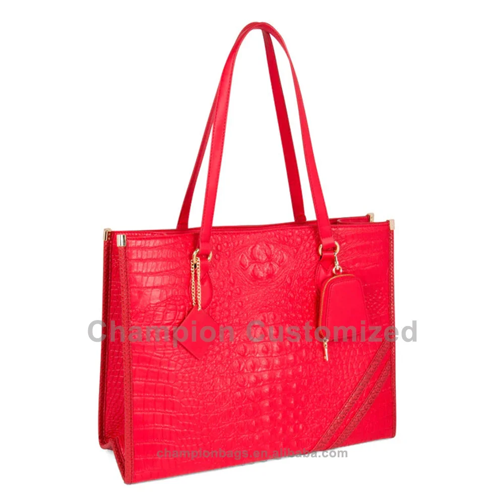 Custom Croc Embossed Leather Ladies Large Tote Bag Shoulder Shopper Handbag Purse for Women