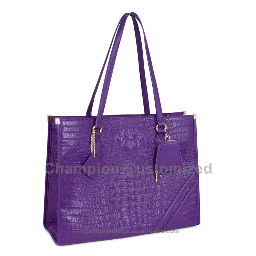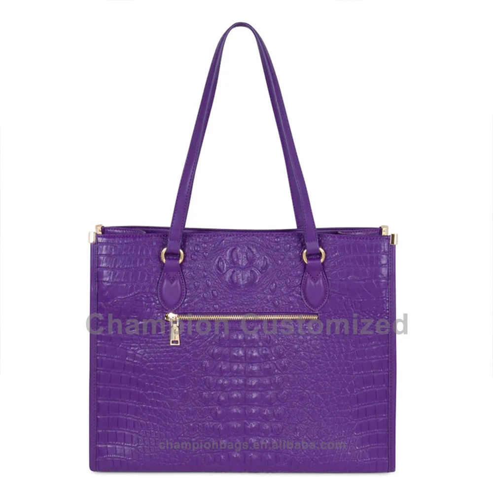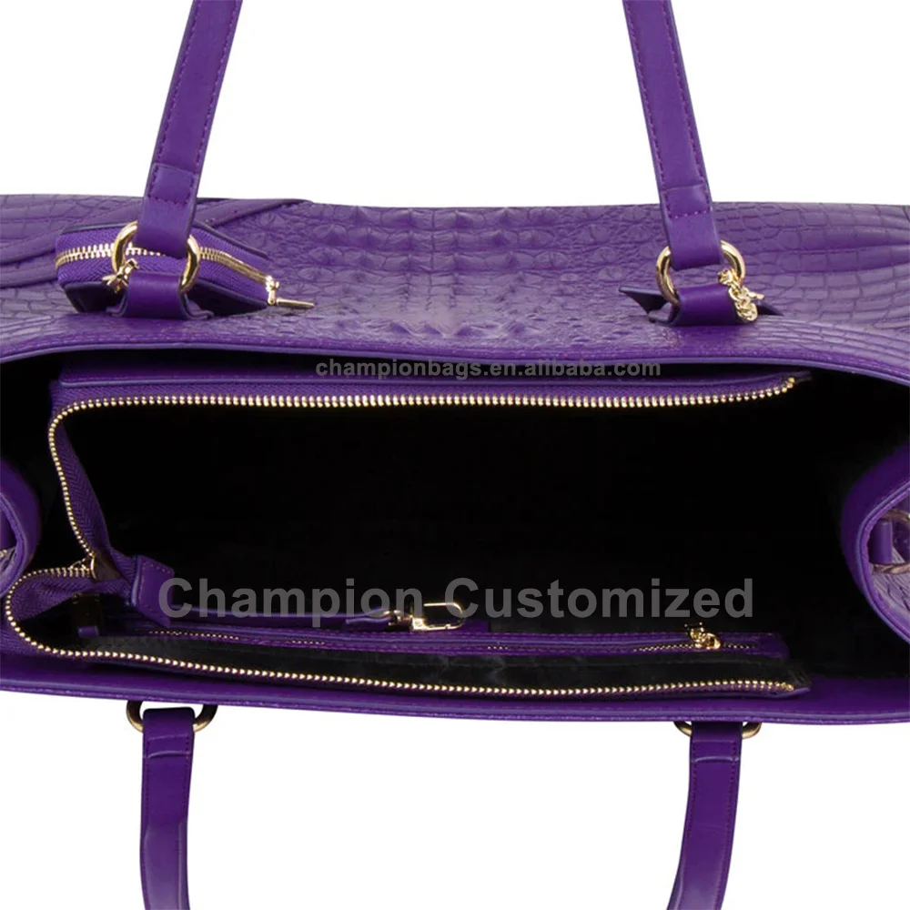 Customized Logo Vegan Croc Leather Purple Ladies Tote Bag Women Shoulder Handbag Purse