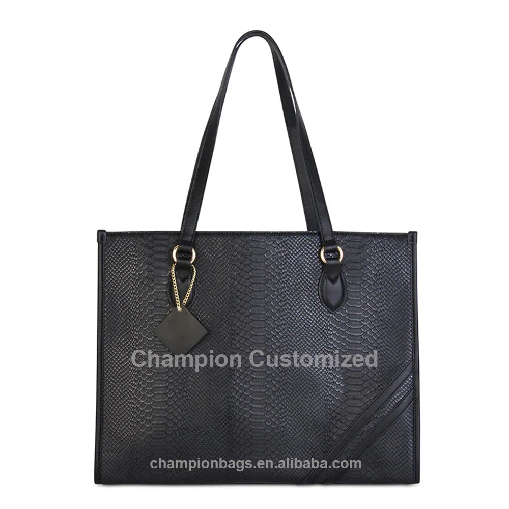 Custom Logo Snake Embossed Leather Ladies Tote Bag Hot Pink Shoulder Shopper Handbag Purse for Women