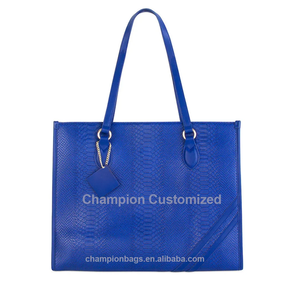 Custom Snake Embossed Leather Royal Blue Ladies Tote Bag Shoulder Shopper Handbag Purse for Women