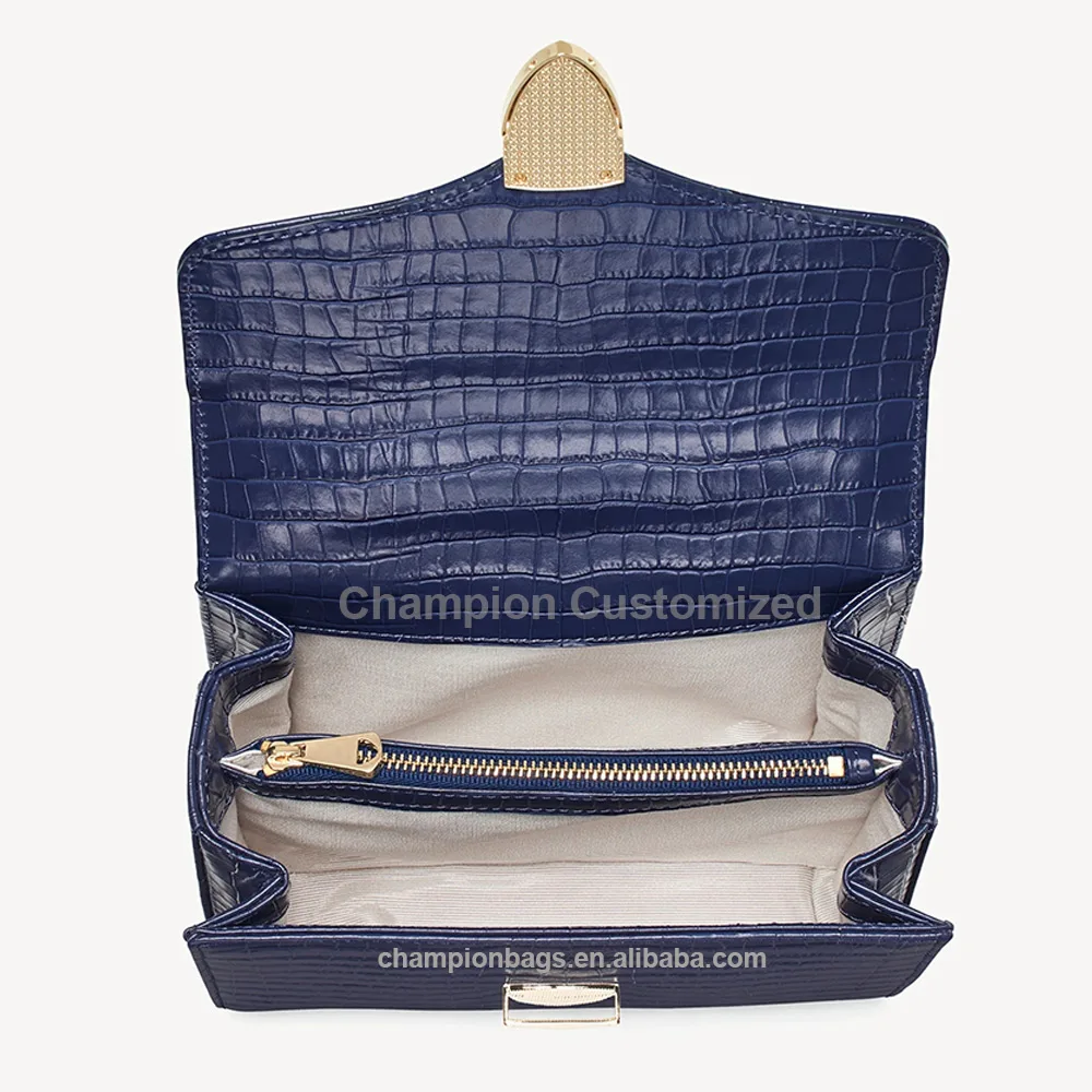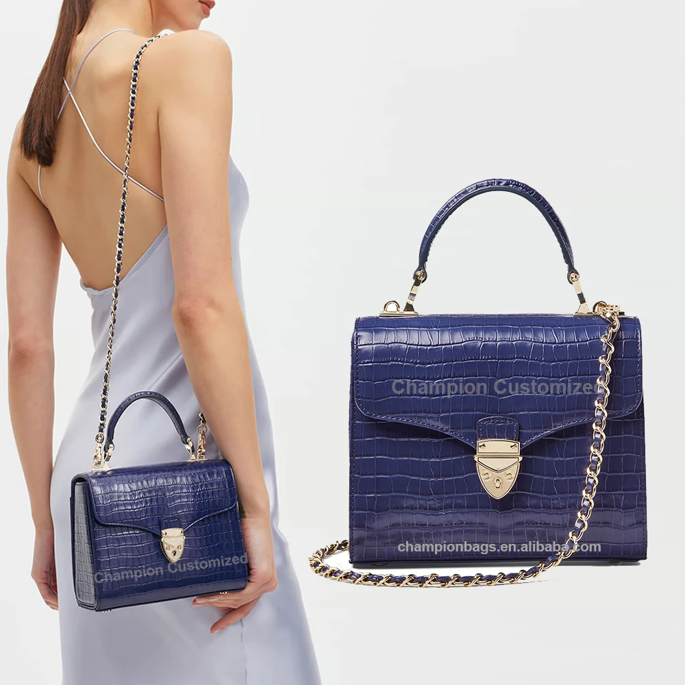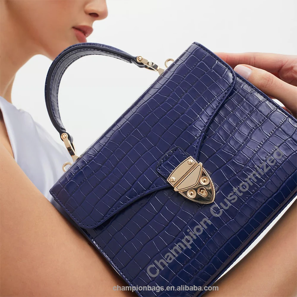 Custom Logo Croc Vegan Leather Top Handle Satchel Ladies Classic Crossbody Women Handbag Purse