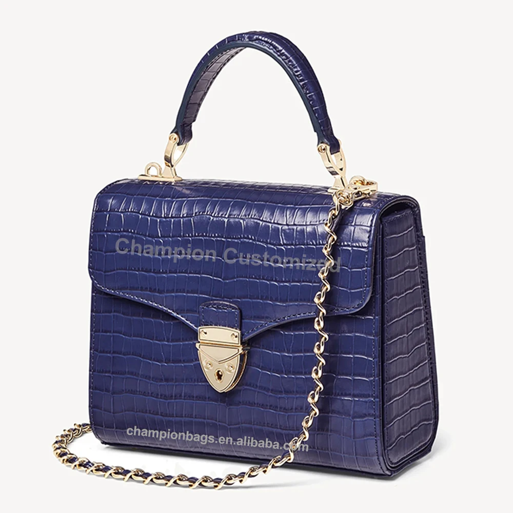 Custom Logo Croc Leather Top Handle Satchel Bag Ladies Classic Crossbody Women City Handbag Purse