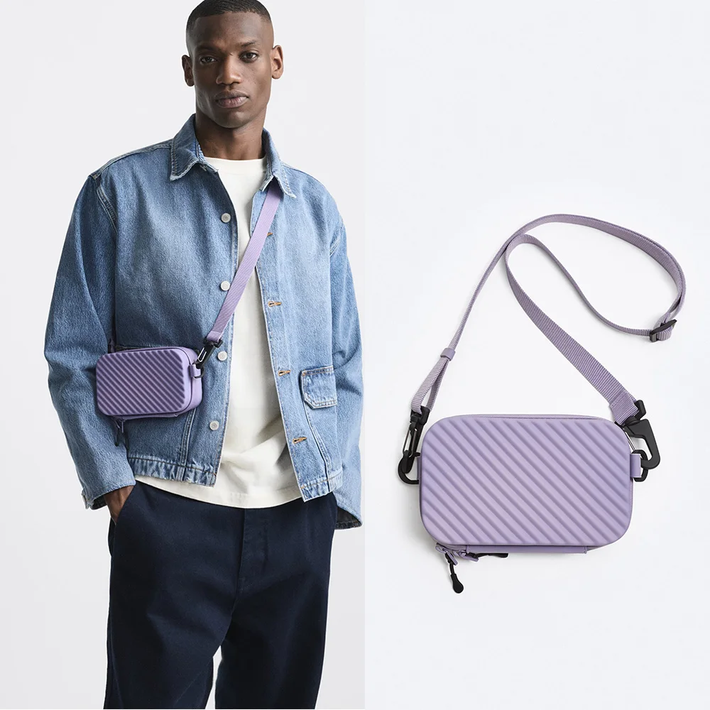 Custom Mauve Fashion Rubber Men's Rigid Box Crossbody Purse Shoulder Sling Side Bag for Men