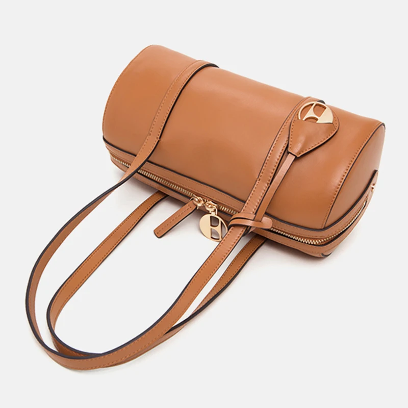 Custom Logo Brown Vegan Leather Fashion Ladies Crossbody Shoulder Boston Bag Women Handbag Purse