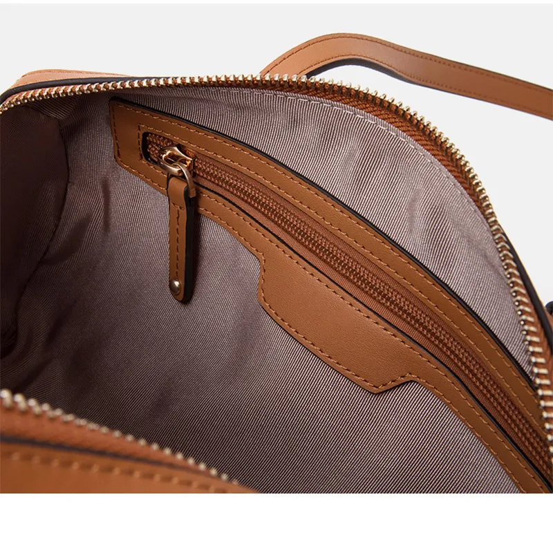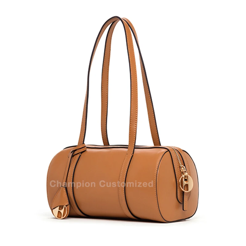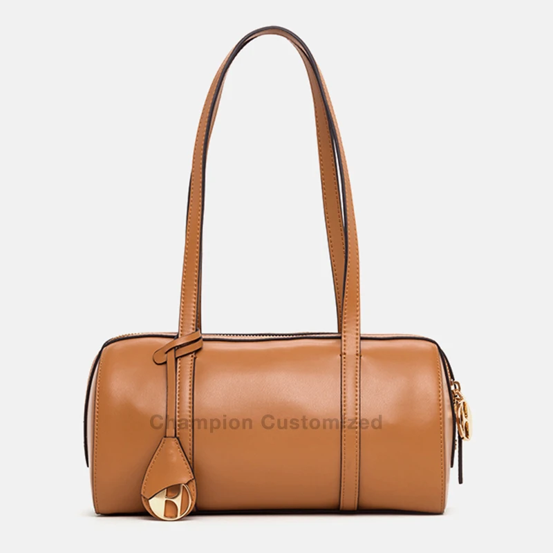 Custom Logo Brown Leather Fashion Crossbody Shoulder Boston Bag Ladies Handbag Purse for Women