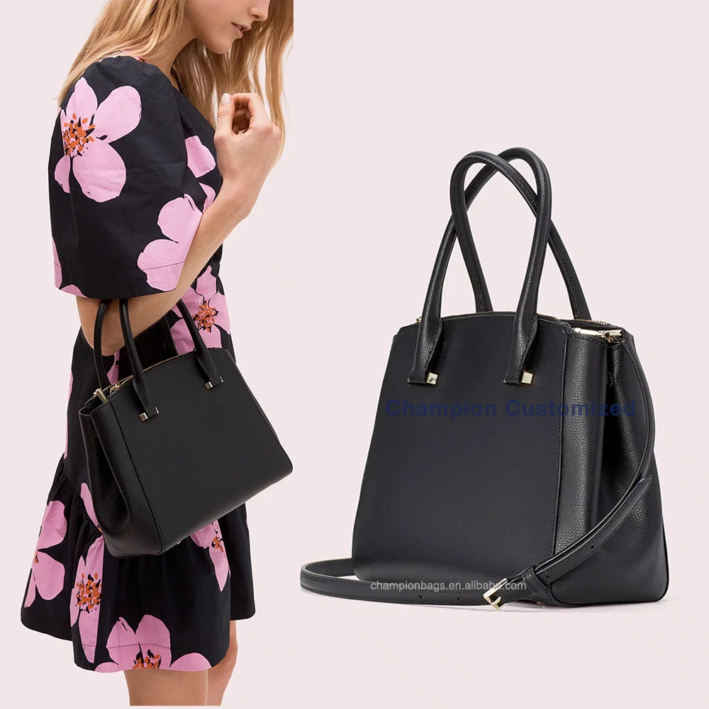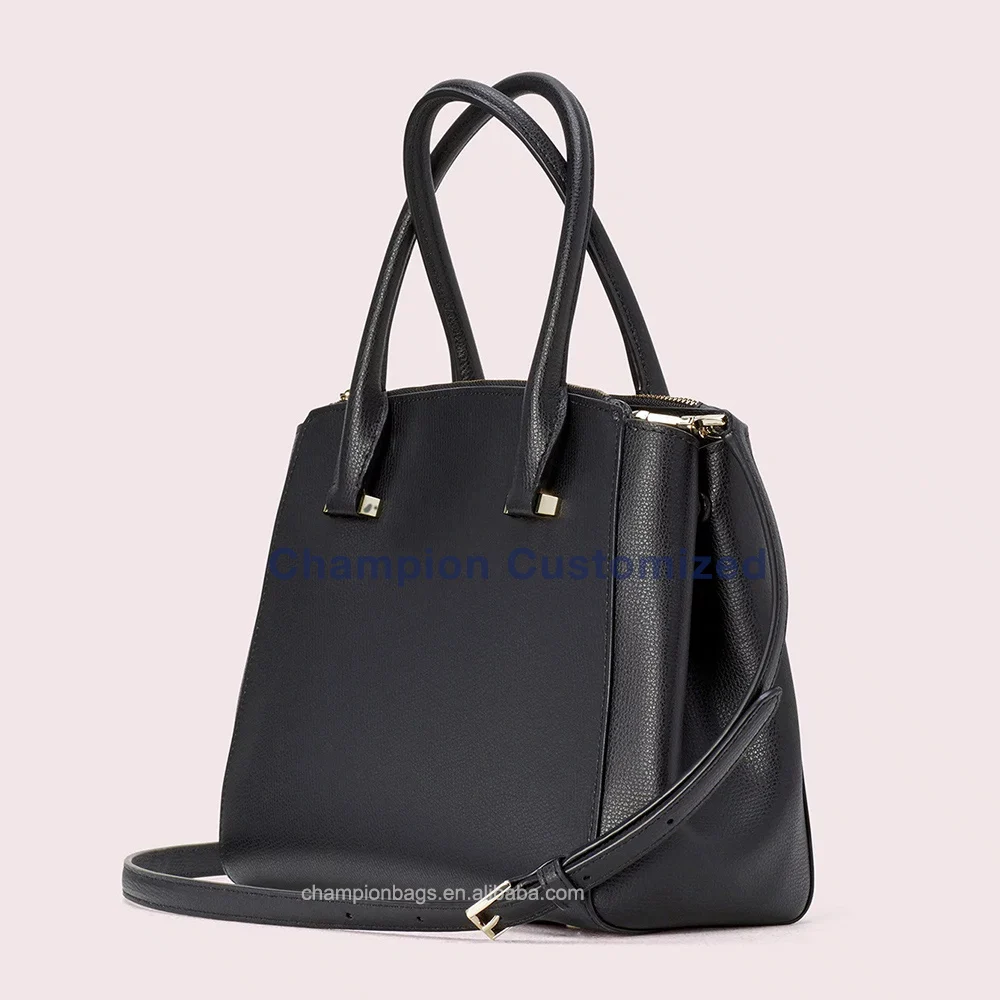 Custom Logo PU Leather Ladies City Office Hand Bag Black Satchel Handbag Purse for Women