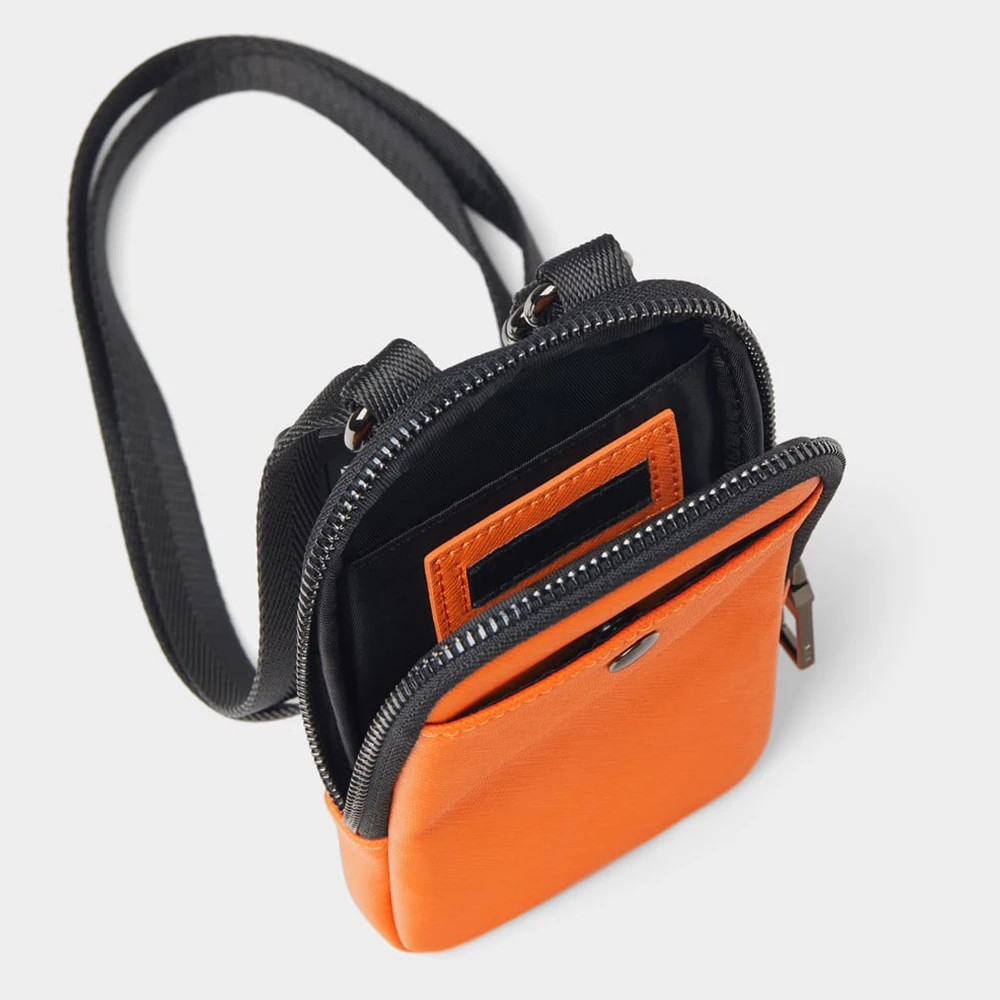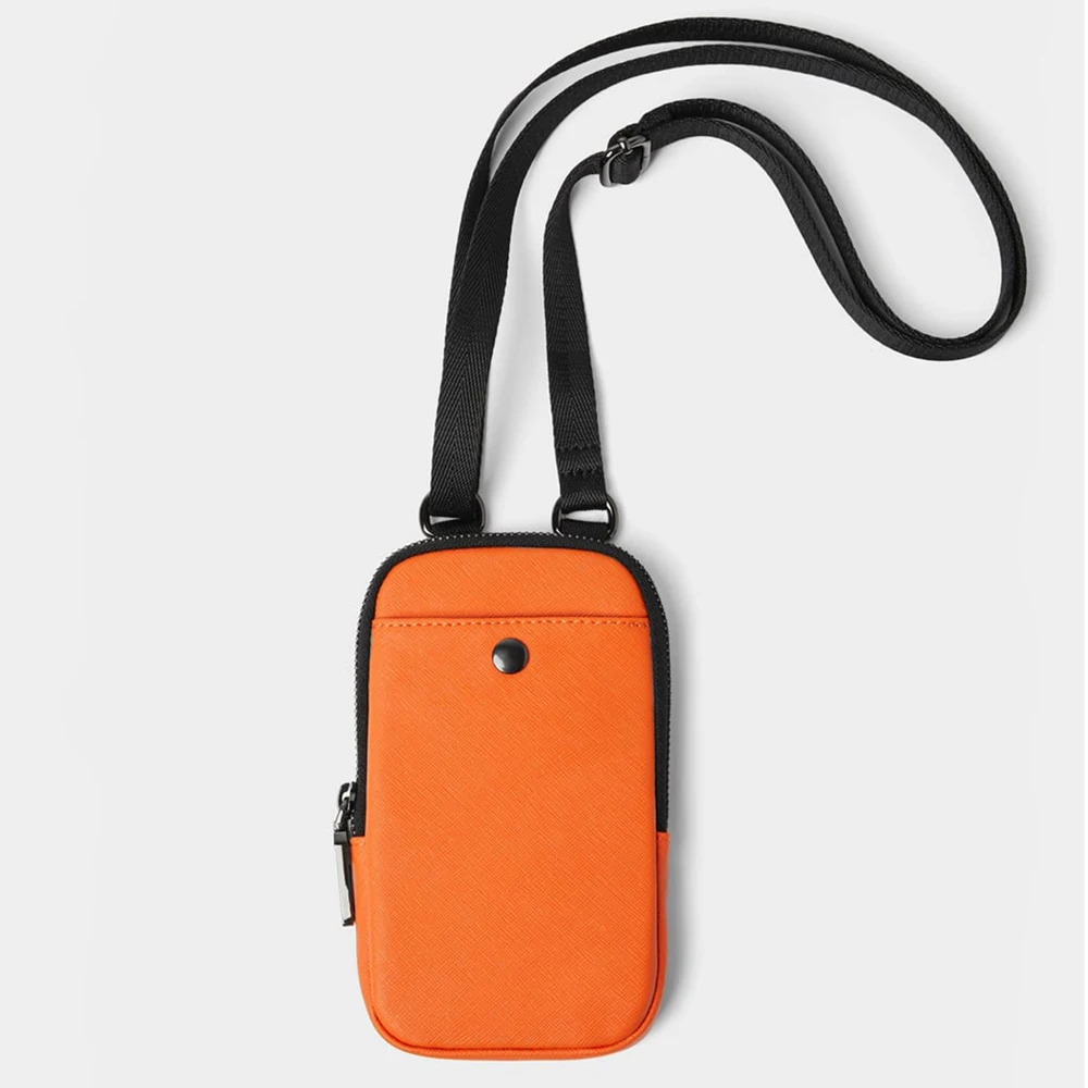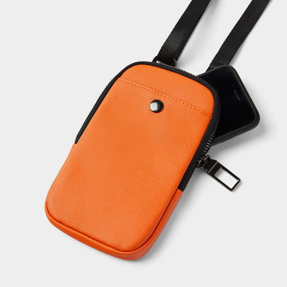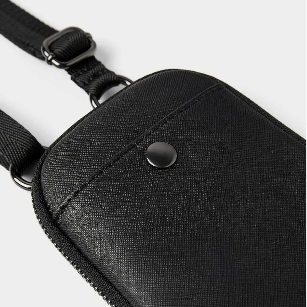 Custom Logo Fashion Saffinao Leather Men's Crossbody Mobile Cell Phone Case Bag With Lanyard