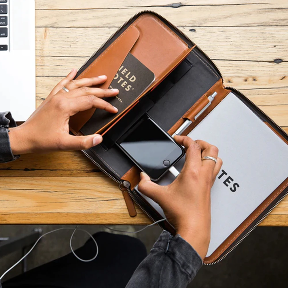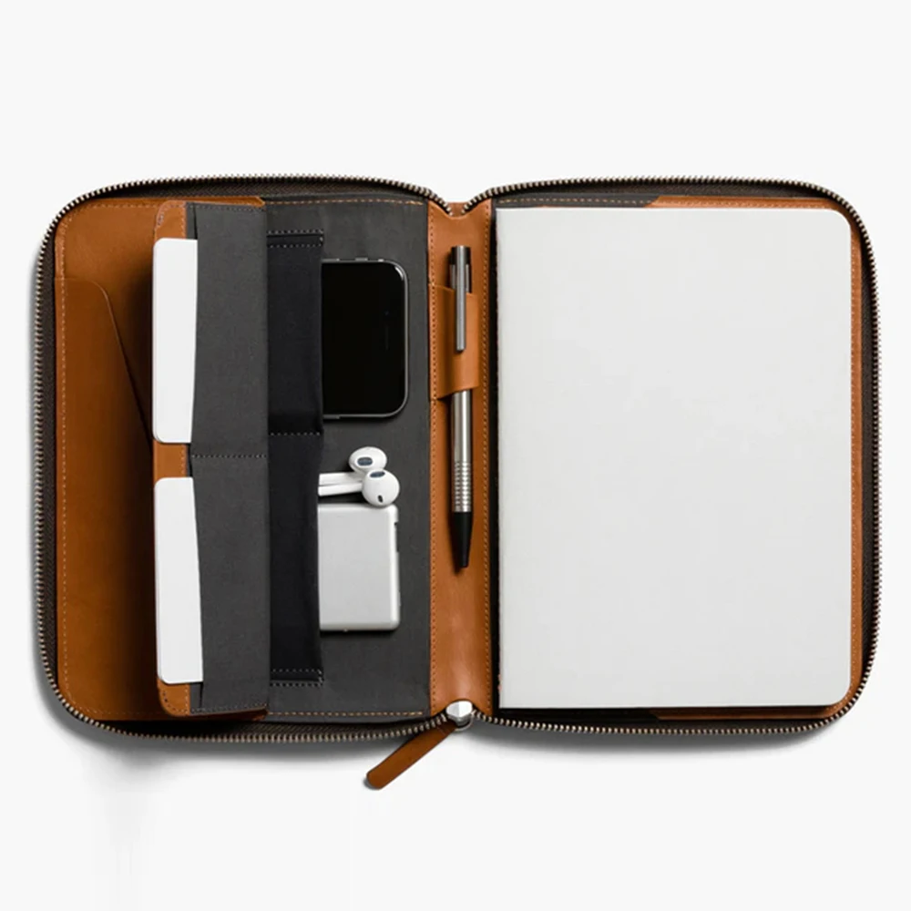 Custom Leather Travel A5 Working Portfolio Small File Document Bag Case Zip Holder Folio