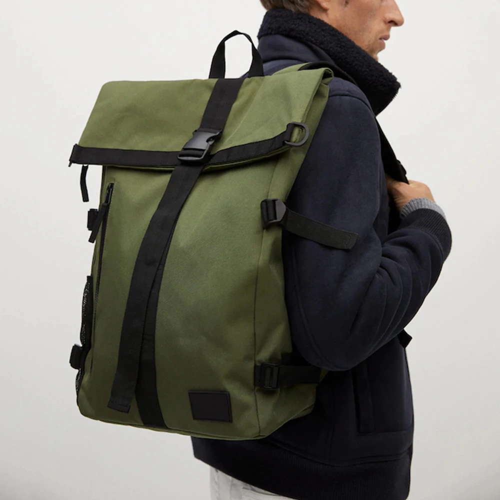 Custom Logo Canvas With Leather Mens Flap Laptop School Backpack Fashion Bagpack Bag for Men