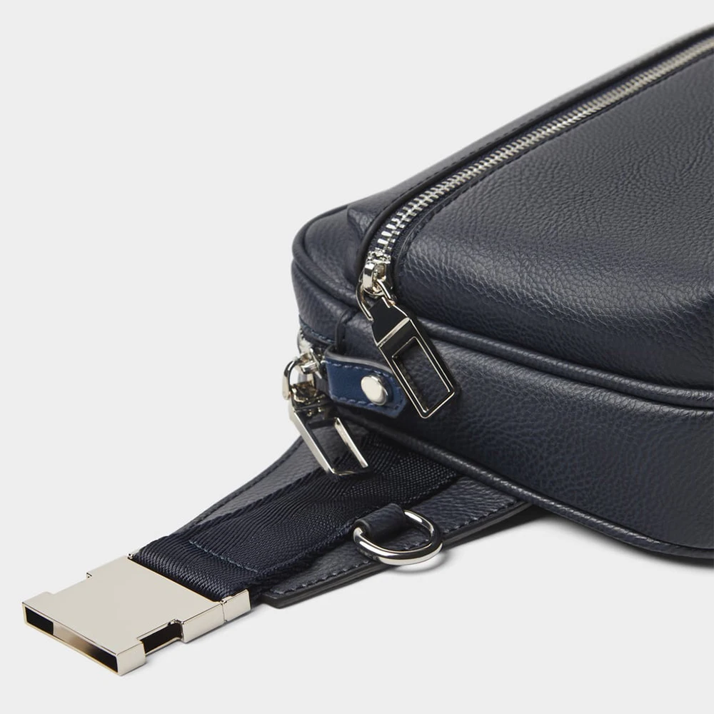 Custom Vegan Leather Navy Men's Fanny Pack Bumbag Casual Zipper Belt Waist Bag for Men