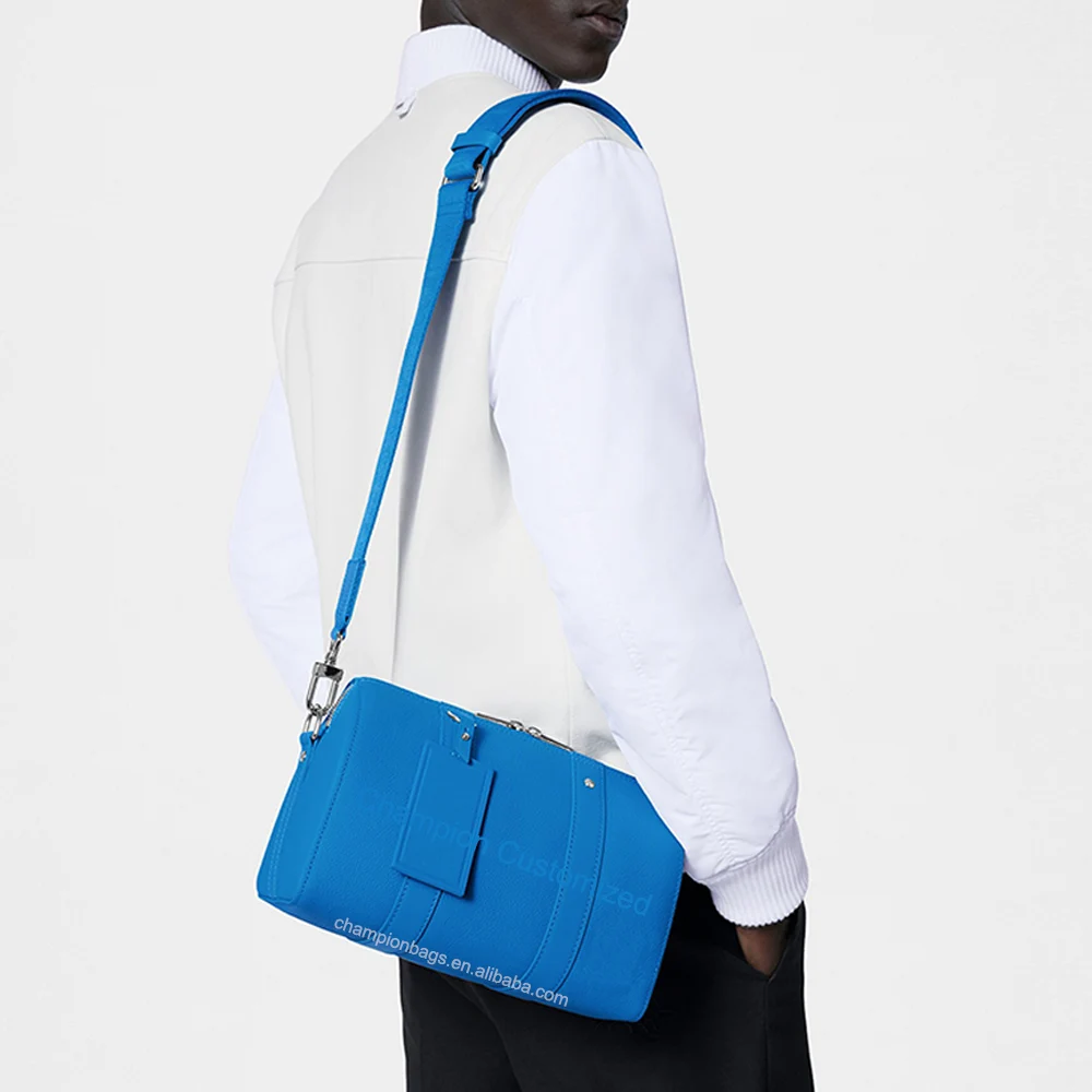 Custom Logo PU Pebble Leather Neon Blue Men's Crossbody Pack Shoulder Messenger Bag for Men