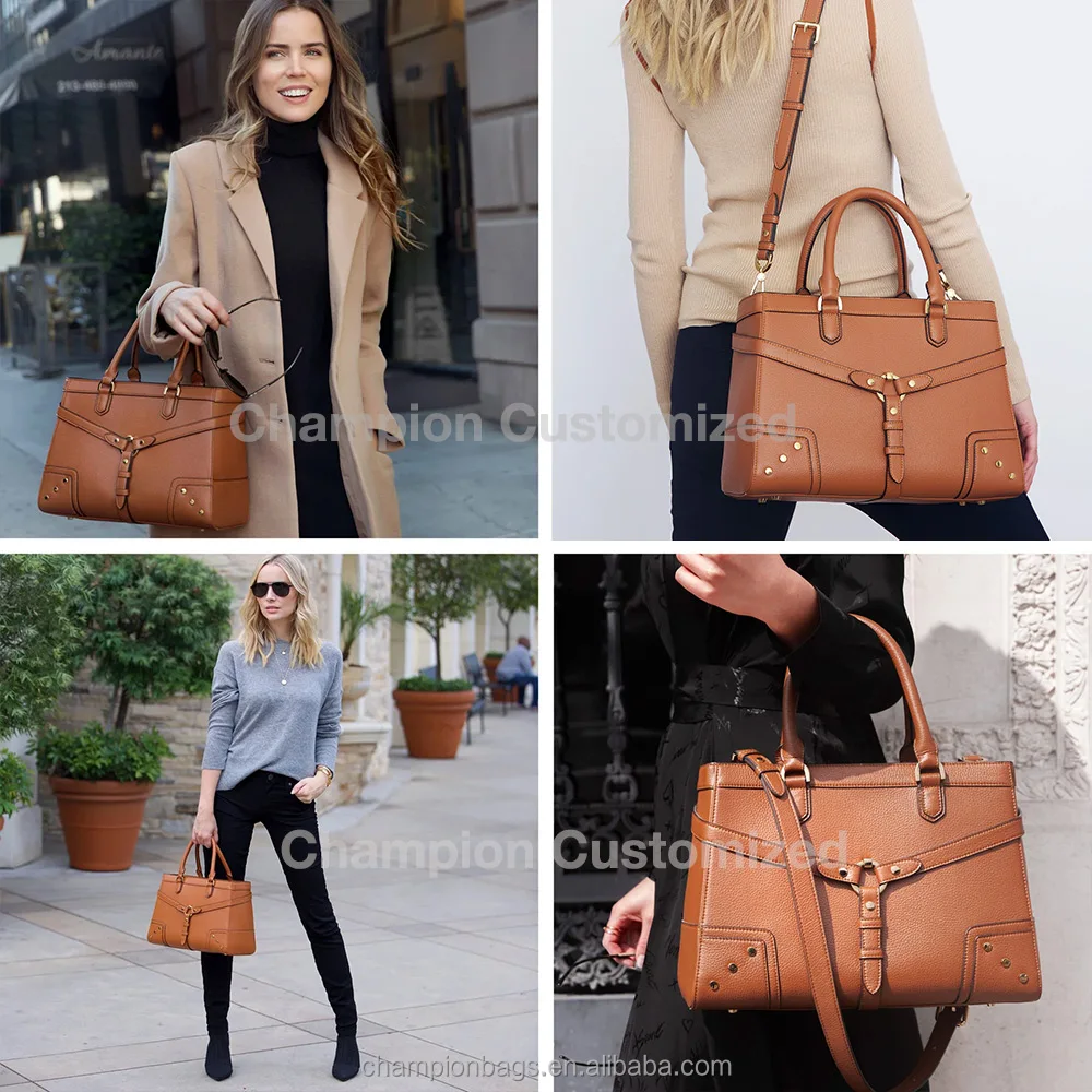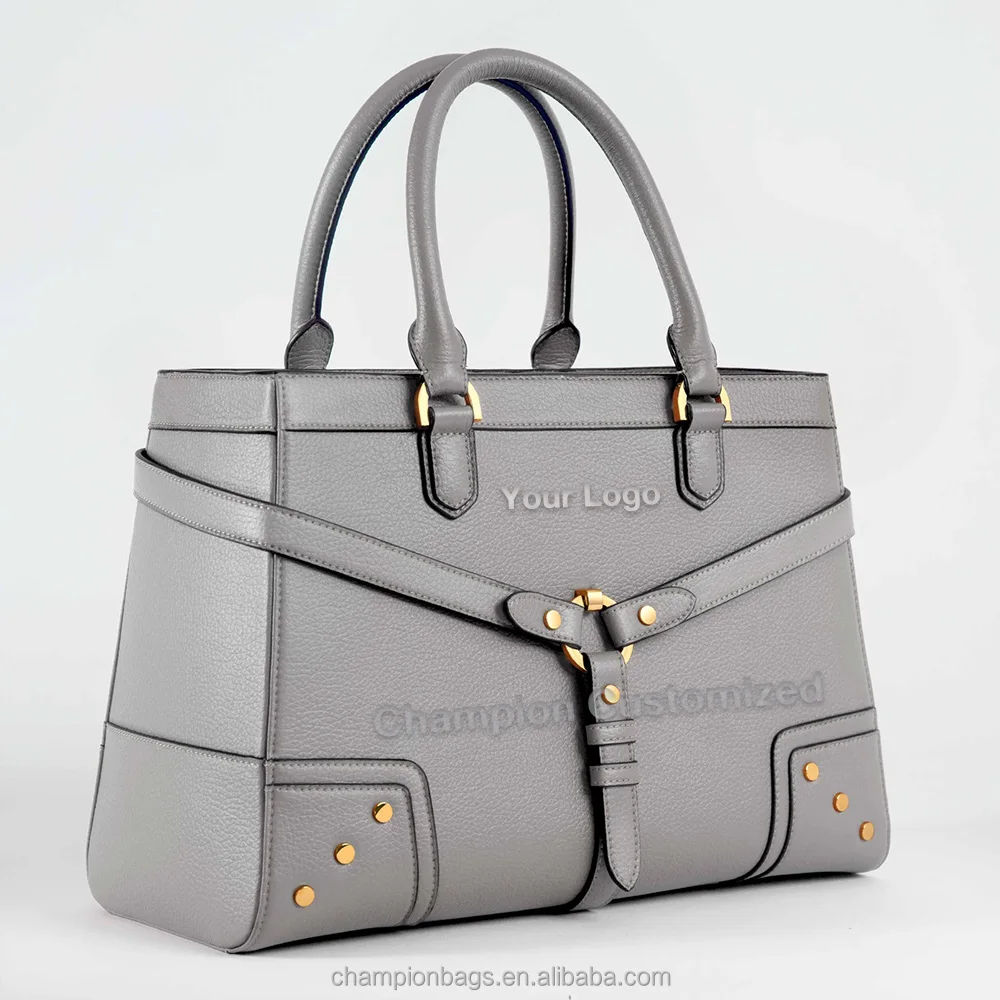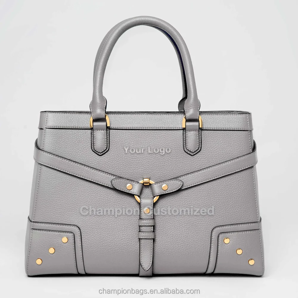 Custom Logo Grey Pebble Leather Top Handle Satchel City Office Hand Bag Women Handbag Purse