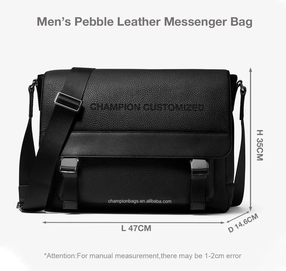 Custom Logo Pebble Leather Men's Crossbody Cross Body Pack for Men Shoulder Messenger Bag With Lock