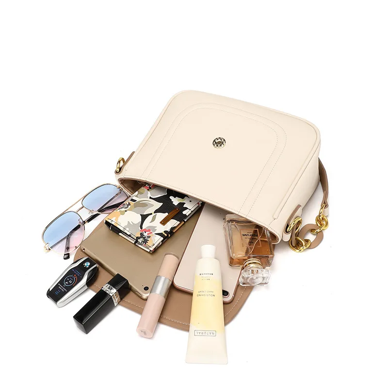 Hot Sell PU Faux Leather White Beige Women Shoulder Handbag Purse Fashion Ladies Bag