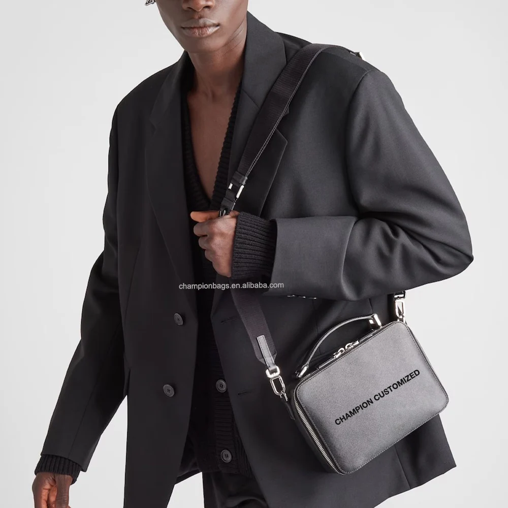 Custom Logo Saffiano Leather Men's Crossbody Messenger Bag Zip Square Shoulder Pack with Logo for Men