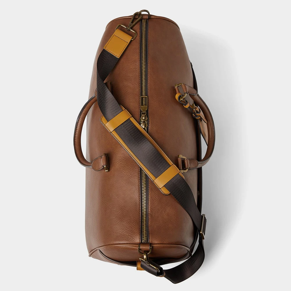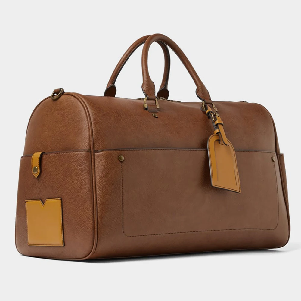Custom Logo PU Smooth Leather Brown Men's Fashion Travel Duffle Weekender Overnight Bag for Men