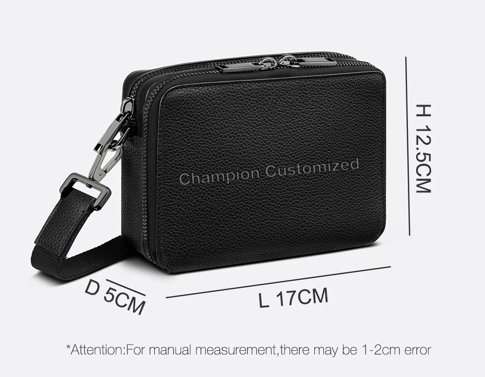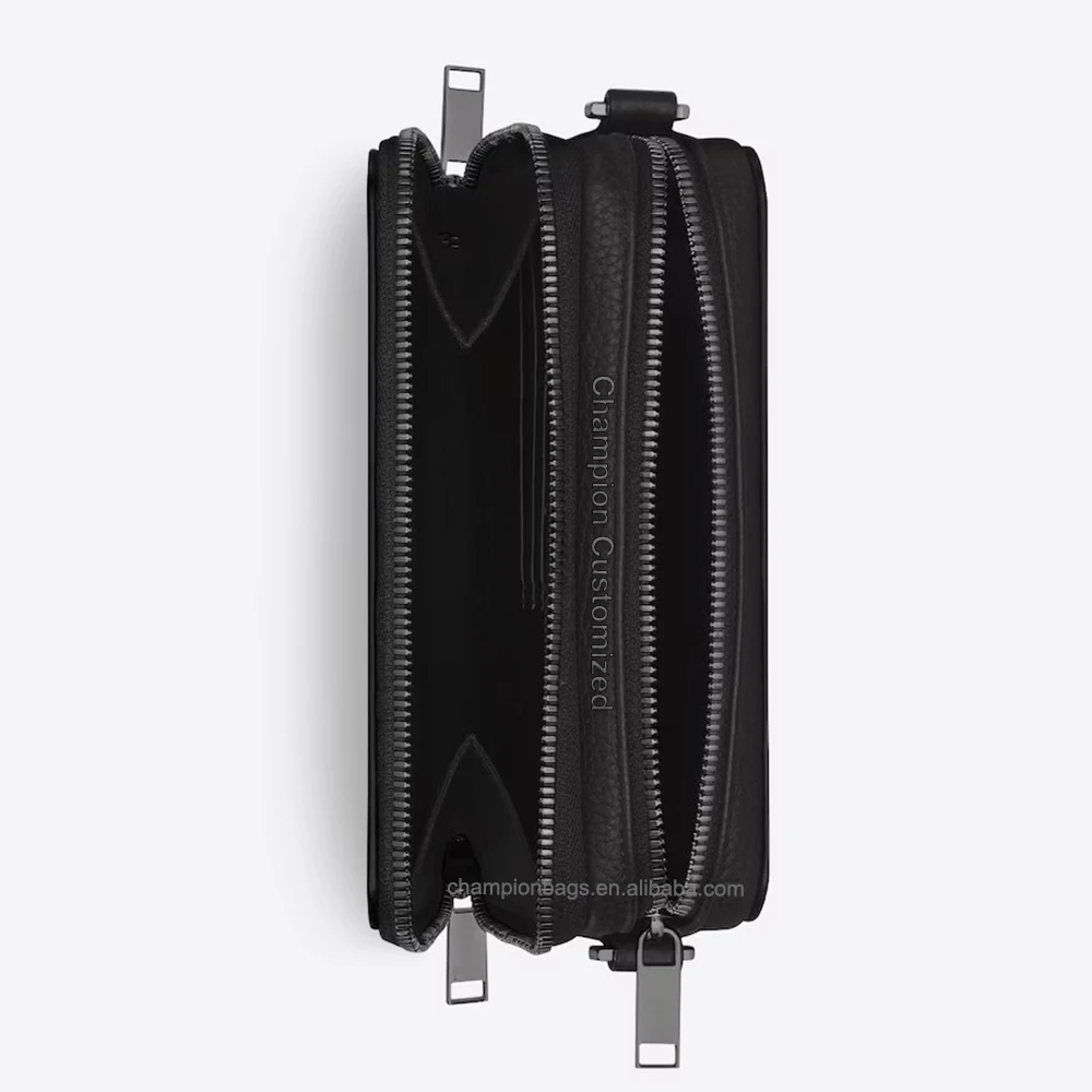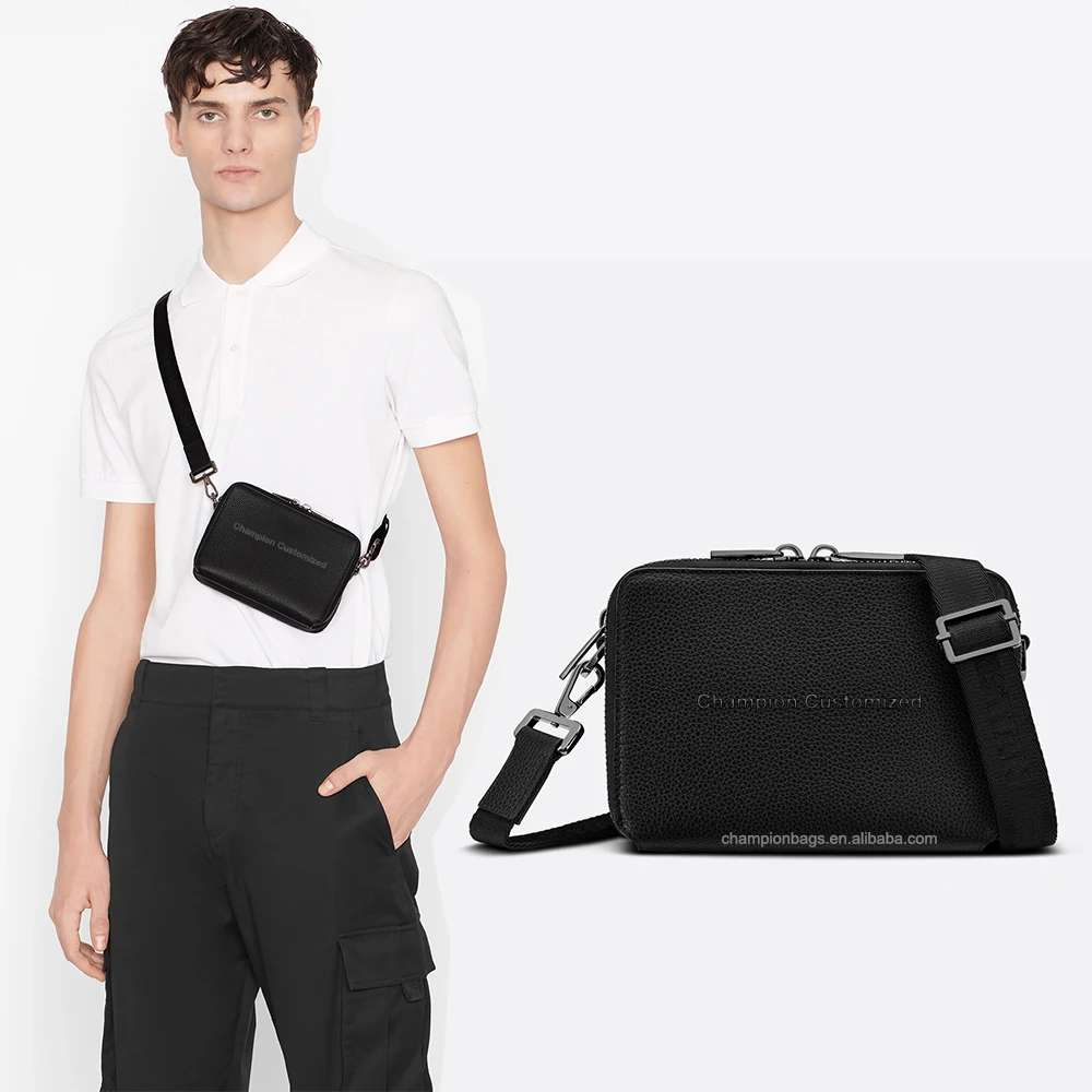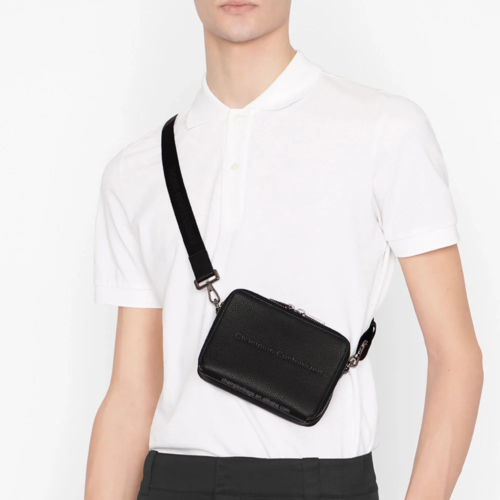 Custom Logo Pebble Leather Men Crossbody Messenger Bag Double Zip Square Shoulder Sling Pack for Men
