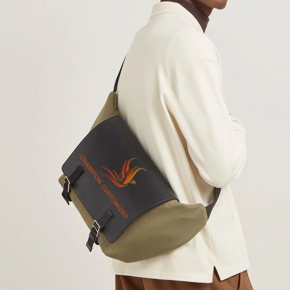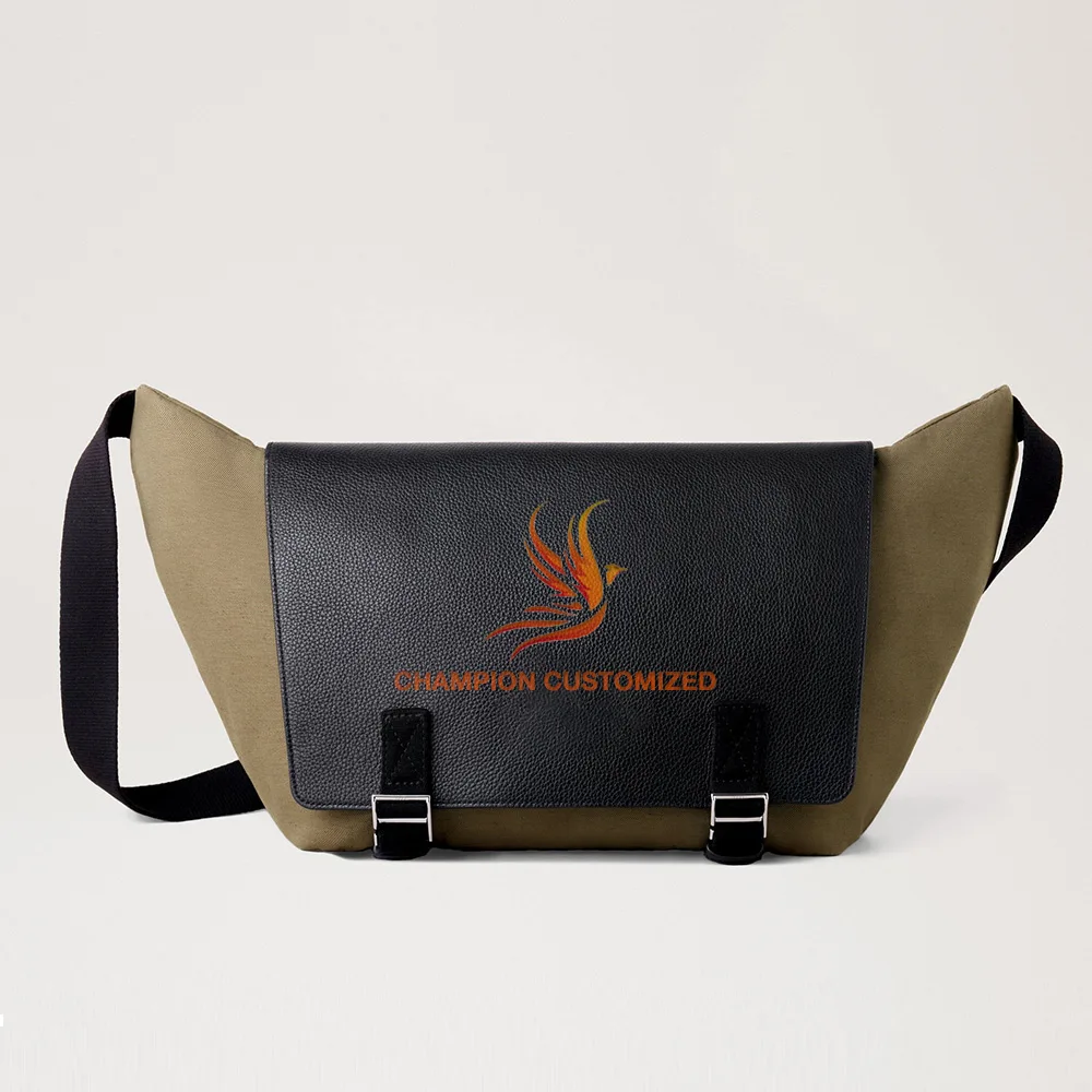 Custom Logo Large Canvas With Leather Mens Fashion Crossbody Chest Pack Messenger Bag for Men