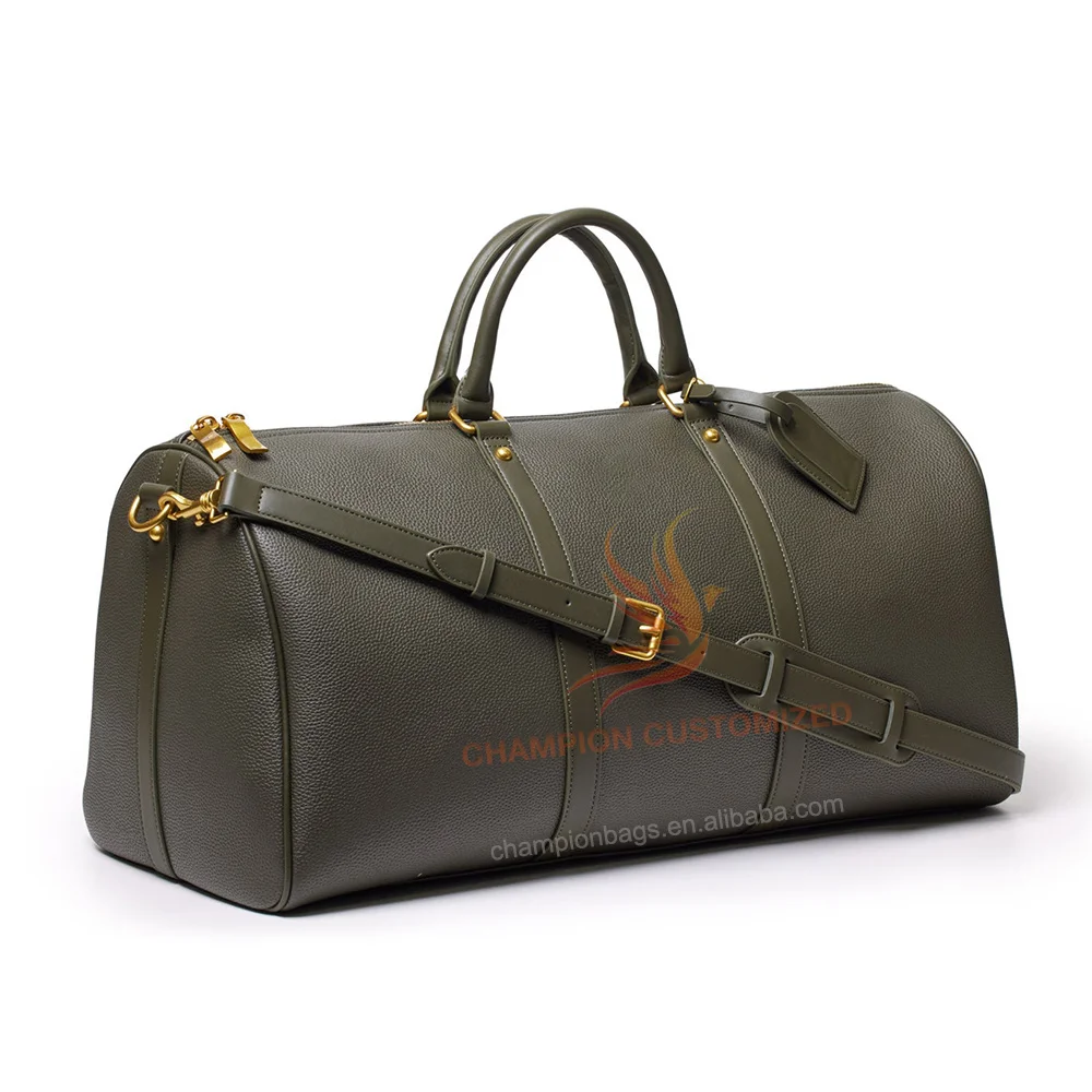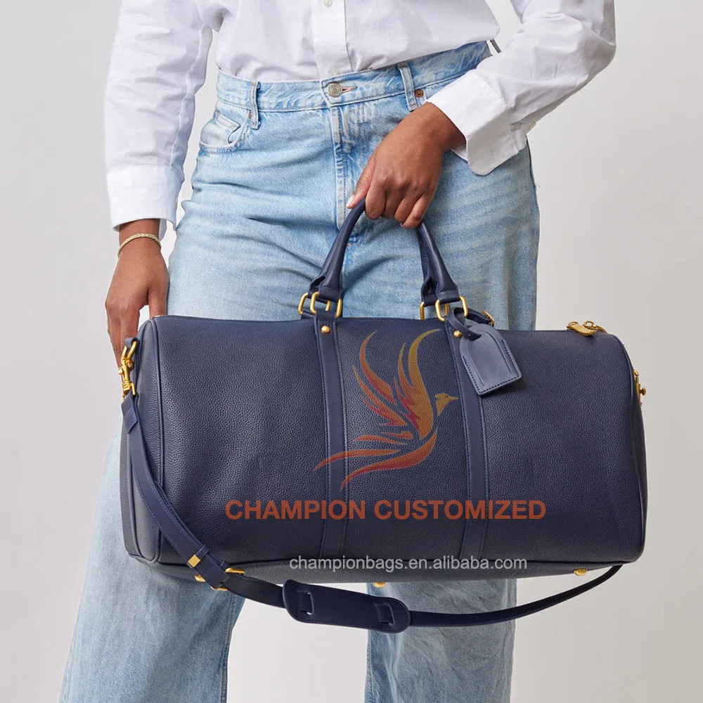 Custom Logo Pebble Leather Fashion Ladies Women Travel Overnight Weekender Duffle Bag