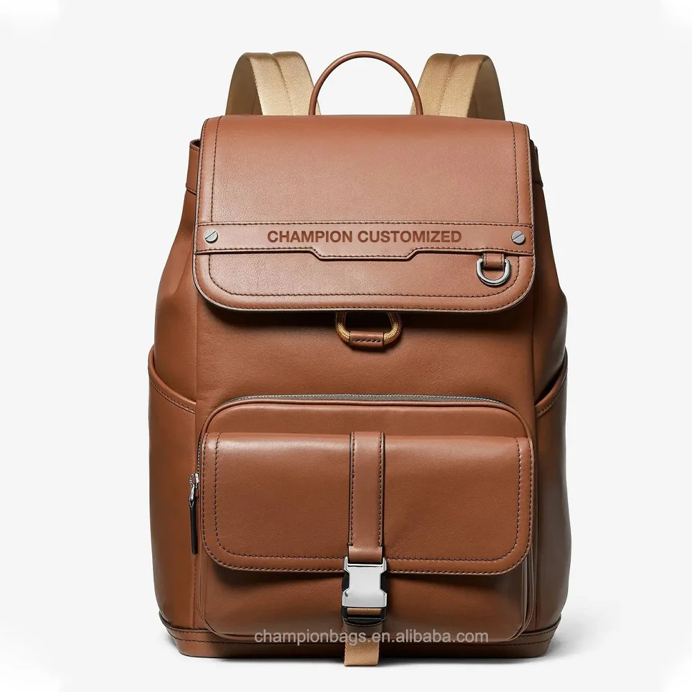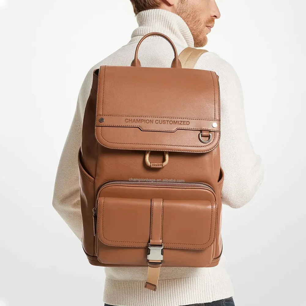 Custom Logo Fashion Brown Leather Mens Laptop Business Backpack Waterproof Bagpack Bag for Men