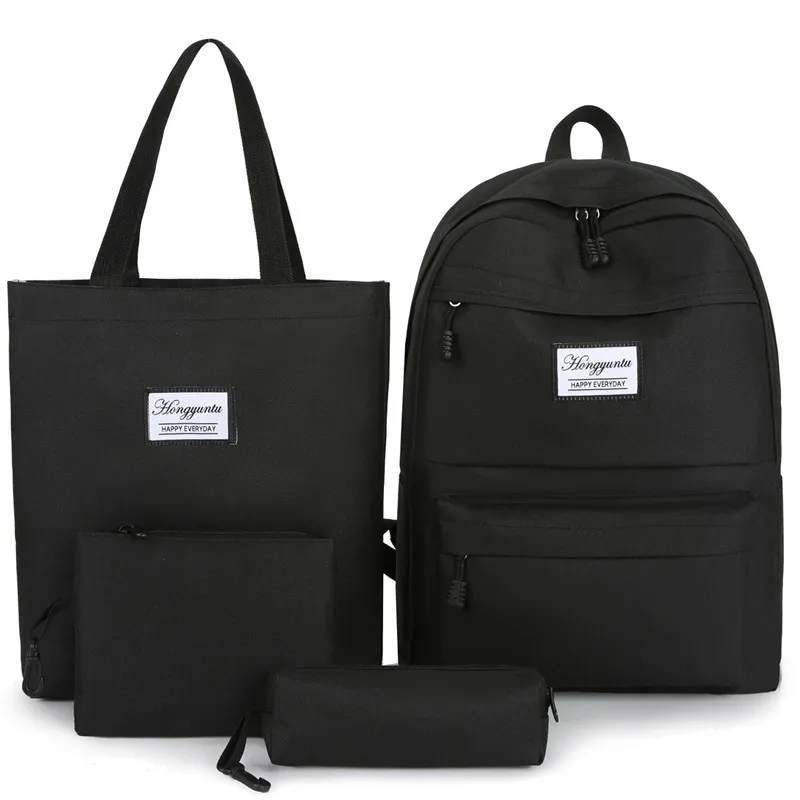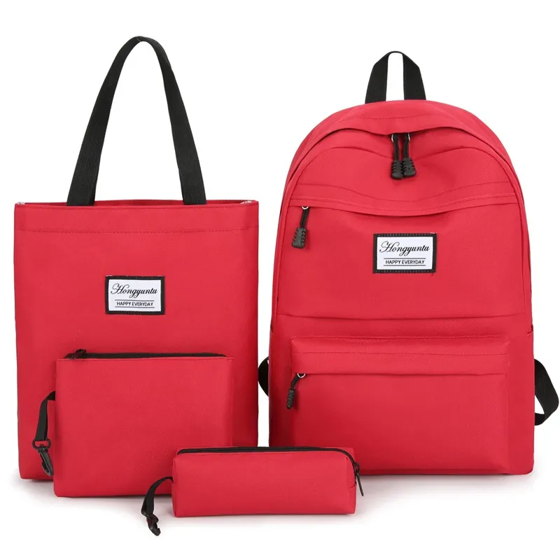 Wholesale Fashion Large Capacity Nylon Girls School Backpack Set with Zipper Closure Water Resistant 4-Piece